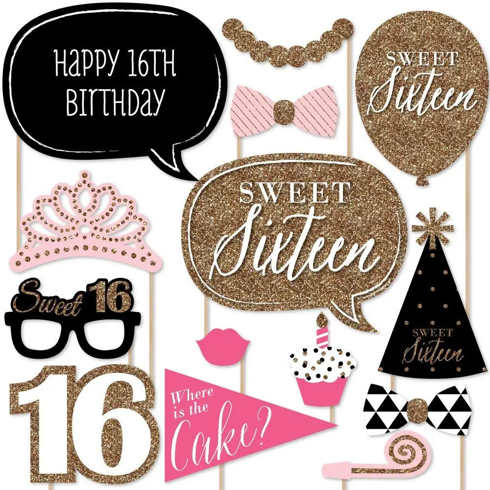 Реквизит для Фотокабины 16-го дня рождения, милые 16 воздушных шаров, розовый реквизит для фотосессии девушки на день рождения PT37
