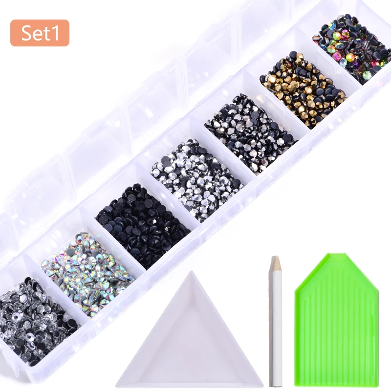 Набор 1: кристалл, кристалл АВ, струйный Черный, лунный свет, красный Вулкан, синий Вулкан, зеленый Вулкан, 1 тарелка, 1 коробка, 1 карандаш