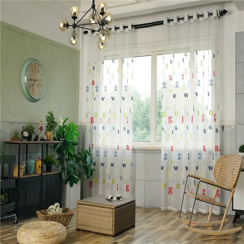 Милые тюлевые шторы с буквенным номером для девочек и мальчиков, детская комната, гостиная, спальня, окно, раннее образование, вышитые прозрачные шторы