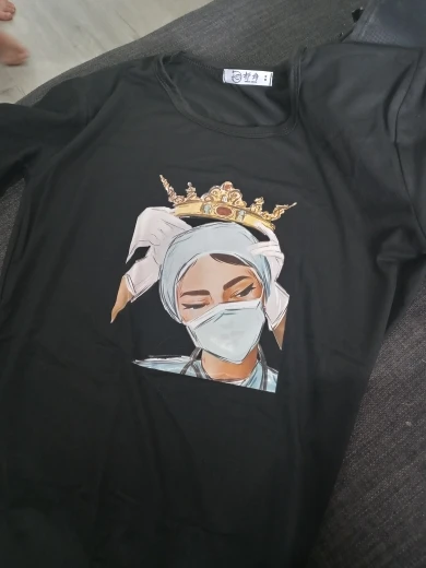 принт,а точнее наклейка, очень маленькая в соотношении размера футболки...клеют только на чёрную...к остальным цветам притензий нет