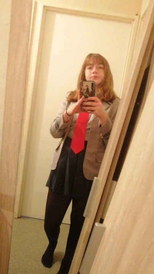 заказала без рубашки, боялась, что S будет большая, но всё по размеру, юбочка правда короткая, если её на талии носить, но я спустила её ниже, нитки почти не торчат, в гольфы я влюбилась особенно заказала 11.11 пришло 12.12