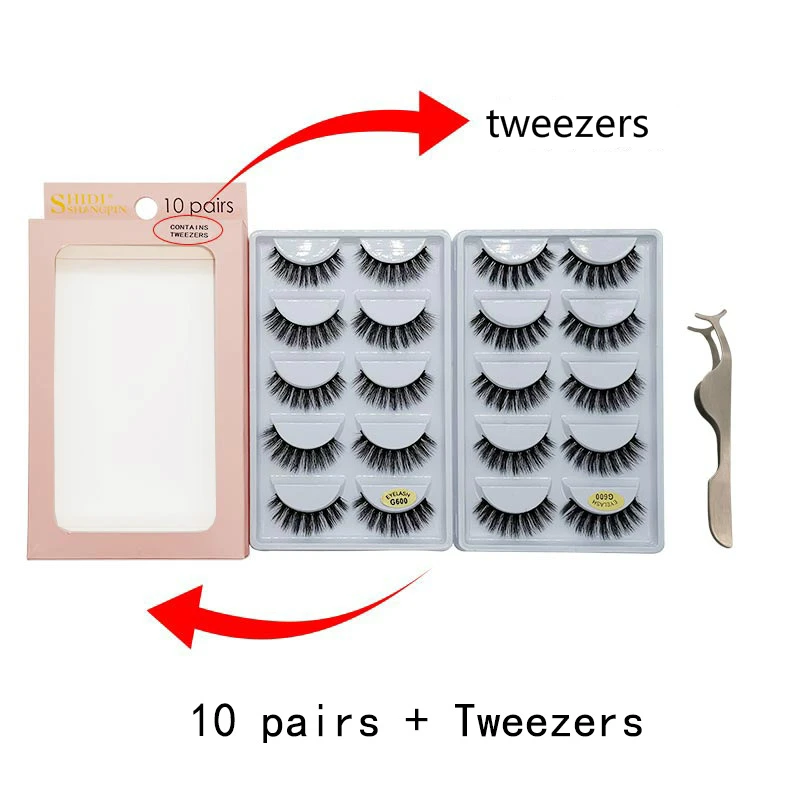 10 пар драматических ресниц из искусственной норки с пинцетом, пушистые накладные ресницы для наращивания, натуральные длинные ресницы 3d, книжка ресниц 2020