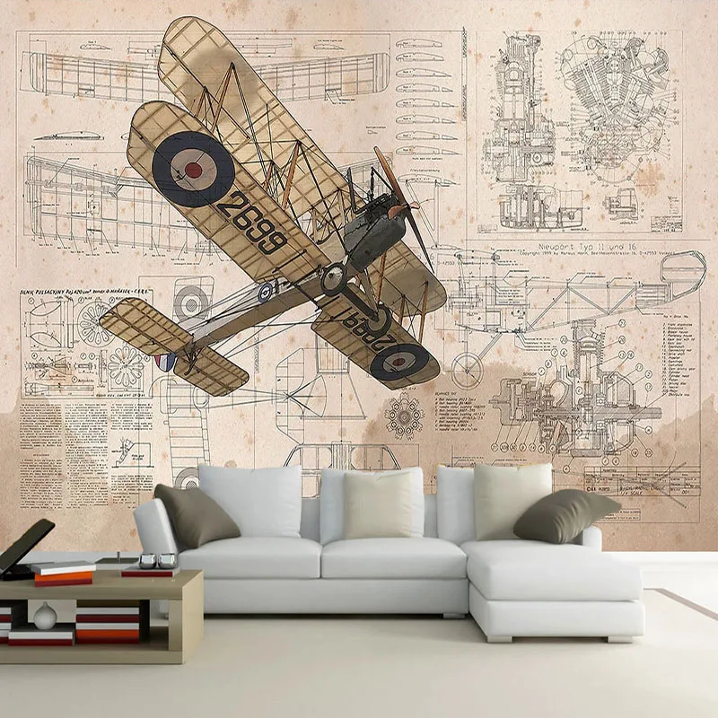 Пользовательские настенные обои любого размера 3D ручная роспись мультфильм ретро самолет настенная живопись для детской комнаты фон для мальчиков обои