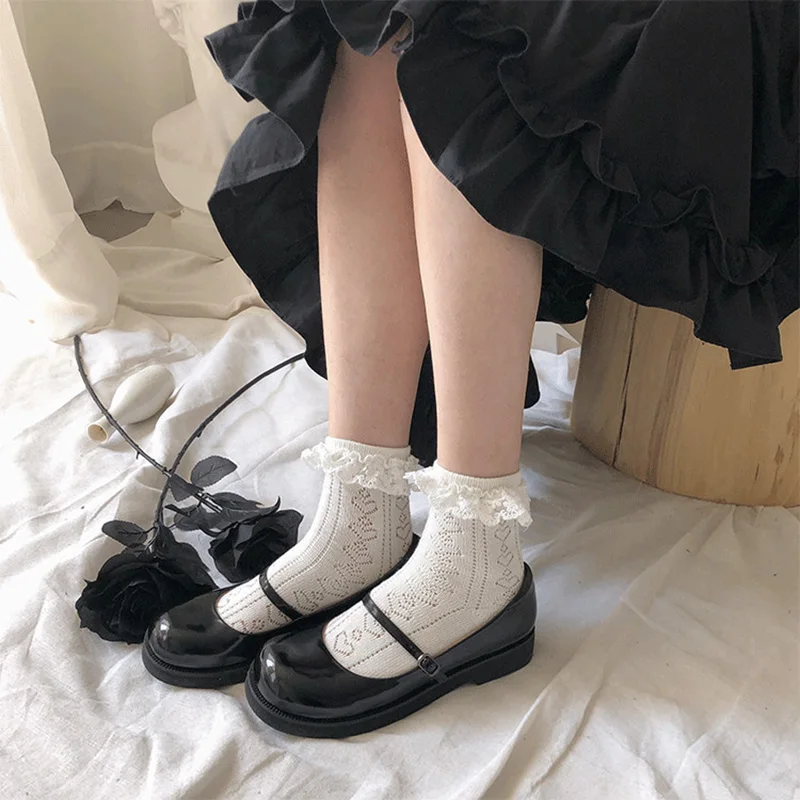 Модные кружевные носки, женские Полые Носки с сердцем, летние носки Лолиты для девочек, женское платье, Calcetine, уличная одежда