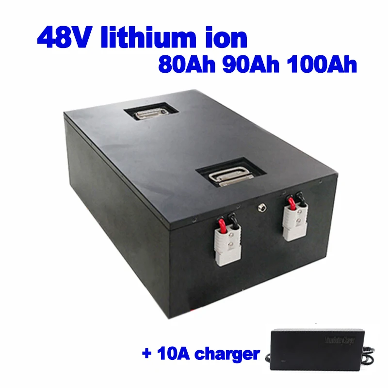 Литий ионная батарея 48В 80Ah 90Ah 100Ah аккумуляторная батарея для зарядки Ноута и сотового телефона 2500w UPS скутер EV RV грузоподъемник тележки для гольфа AGV самоходная уборочная машина + 10A Зарядное устройство