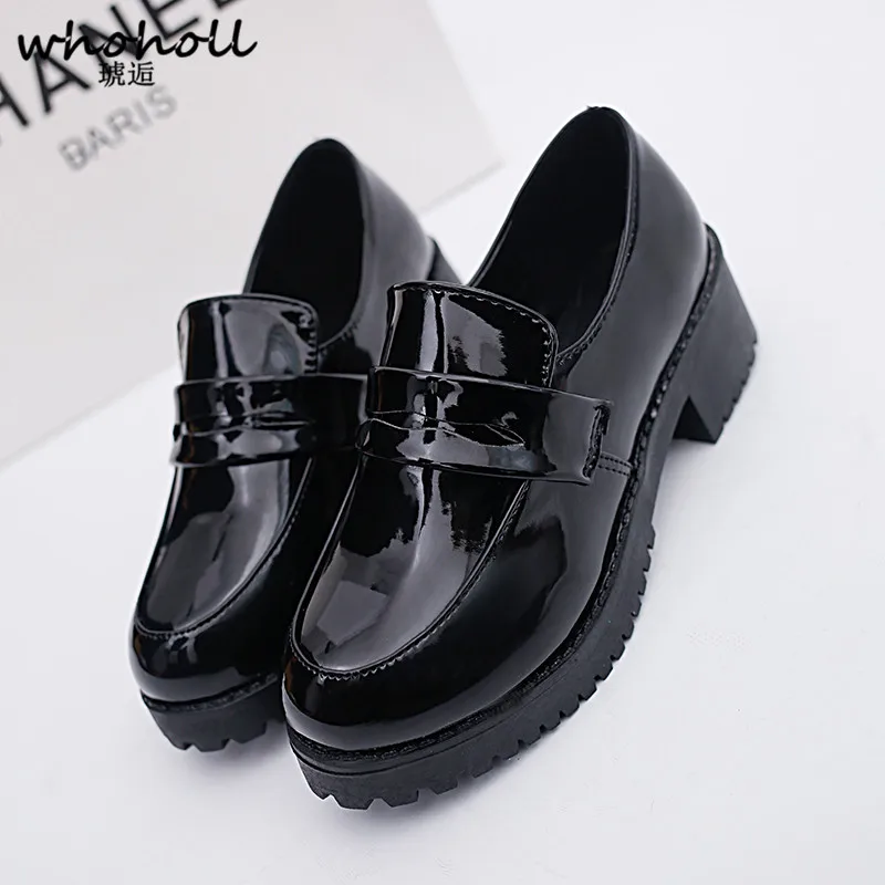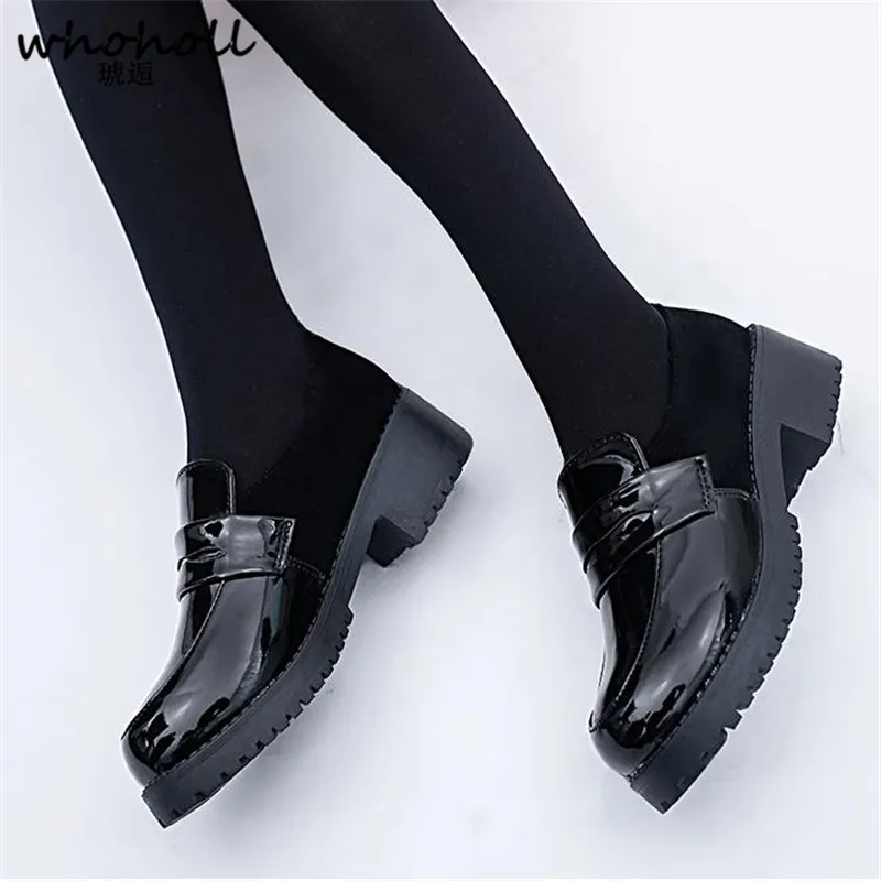 WHOHOLLженская сапоги горничной обувь в стиле Лолиты; Кожаные Туфли с круглым носком; Японская школьная форма JK; Kawaii Anime Cosplay