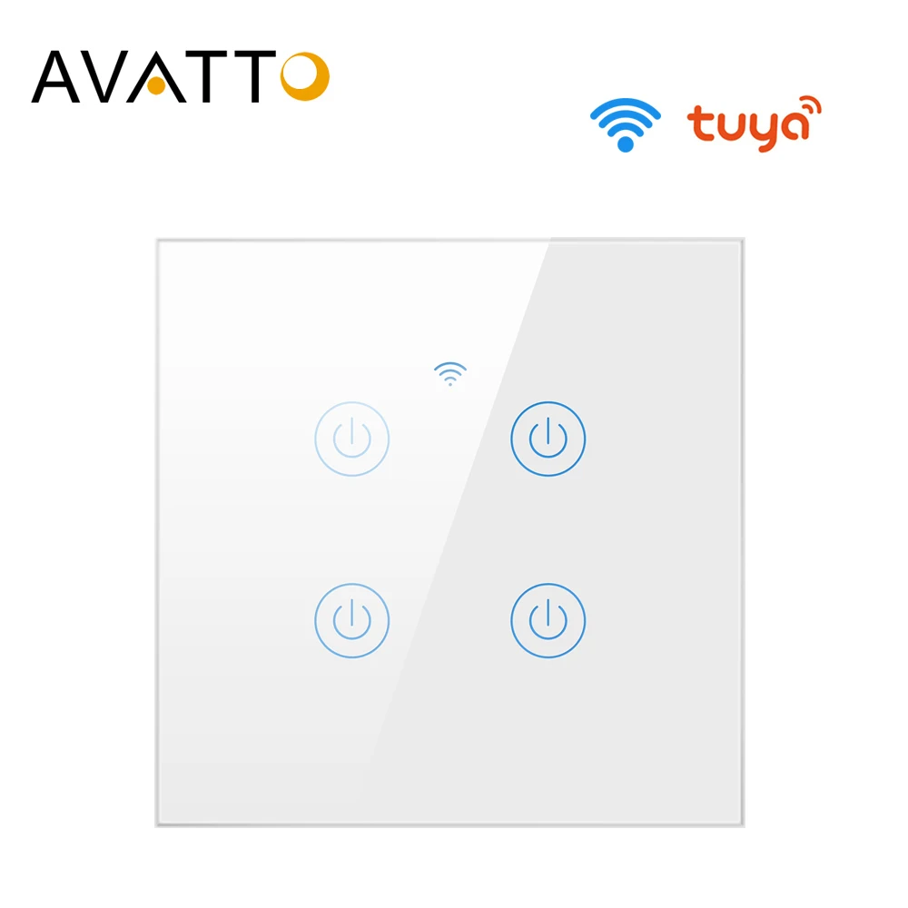 Коммутатор для умного дома AVATTO Tuya, Wi-Fi, работает без нейтрального провода, 1234 Gang EU Smart Light Switch, работает с Alexa, Google Home
