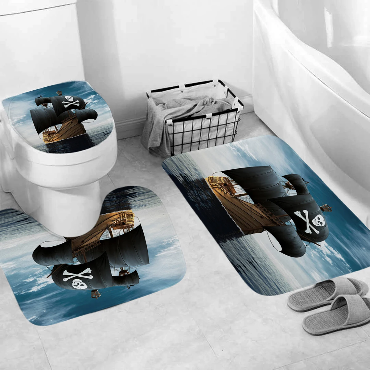 3D занавеска для душа с пиратским кораблем, с крючками, занавески для ванной комнаты с морским океаном, Нескользящие коврики, крышка для туалета, набор ковриков