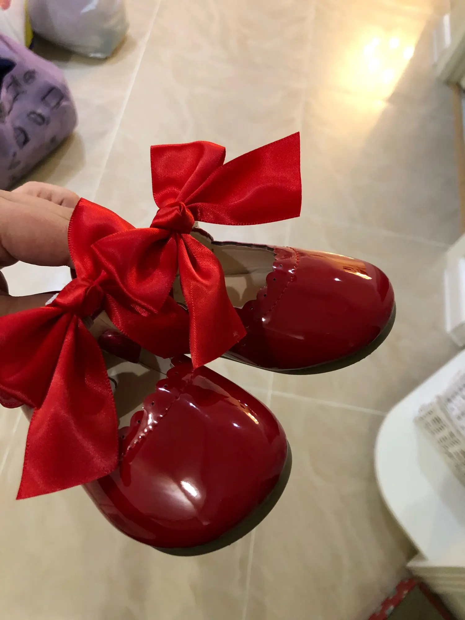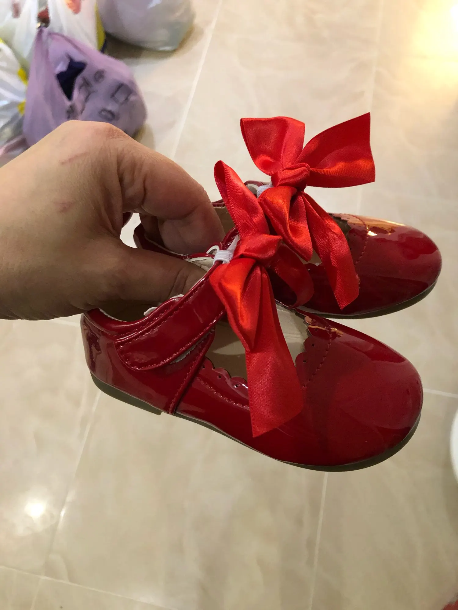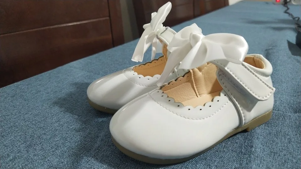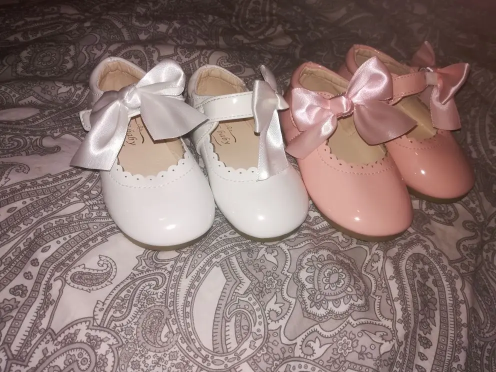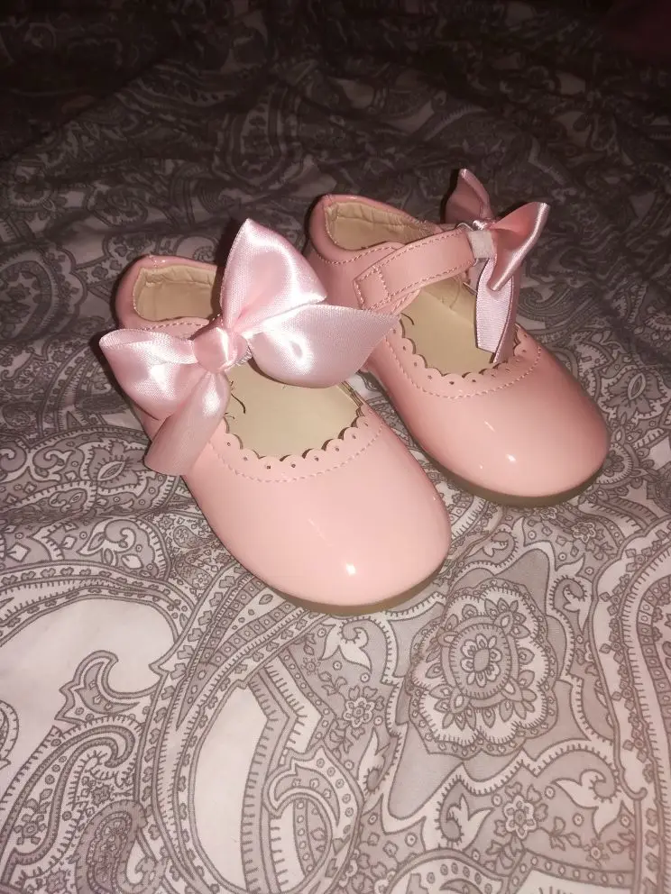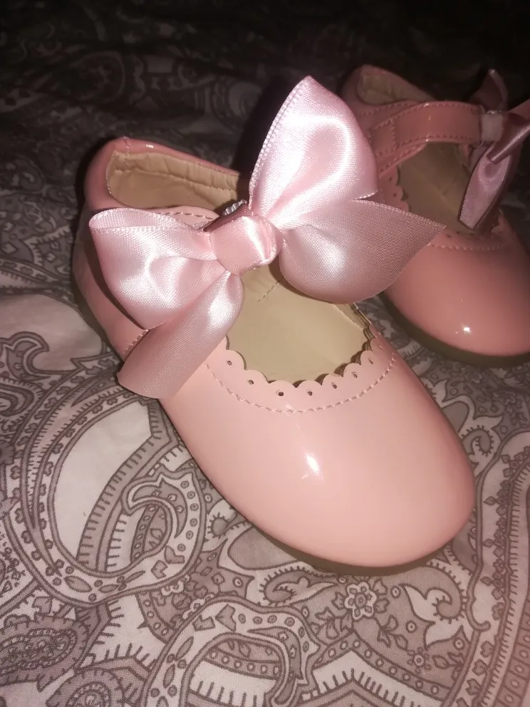 туфли роскошные! качество как дорогие брендовые туфли. единственный минус это виден клей на бантиках но их легко можно снять. они на резинке. одеваются на ремешок. на ребенка которому 1 годик с запасом 21 размер. доставка Мега скоростная. до России неделя.