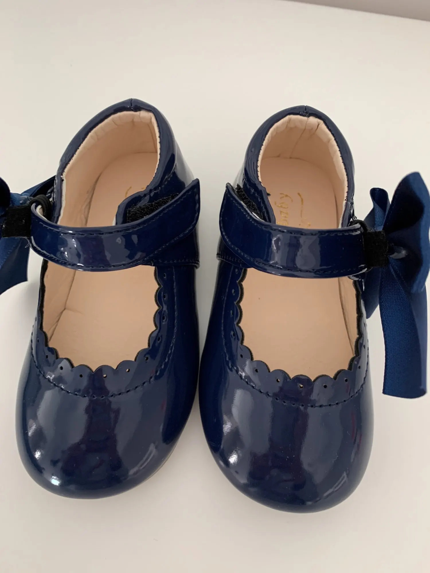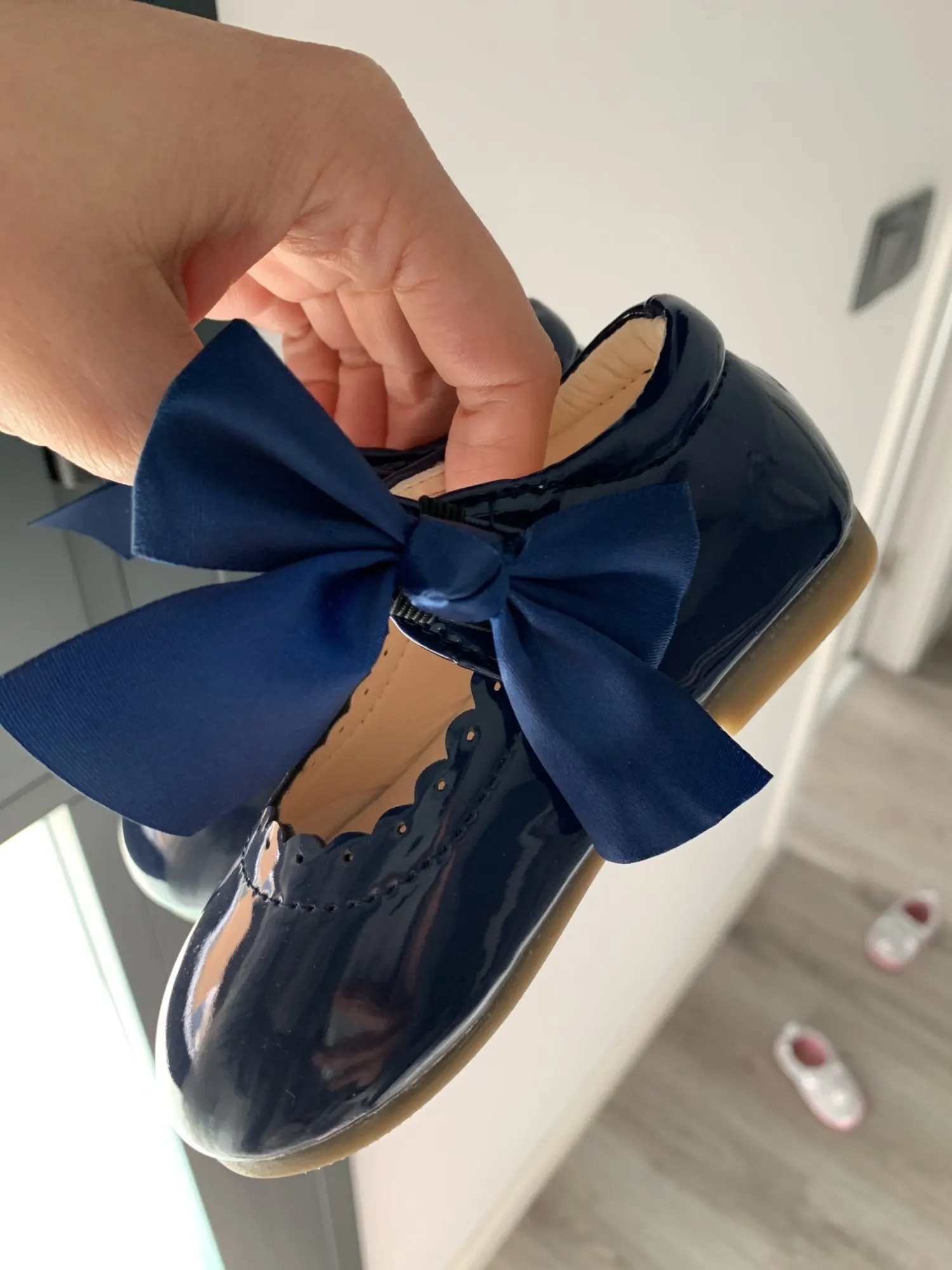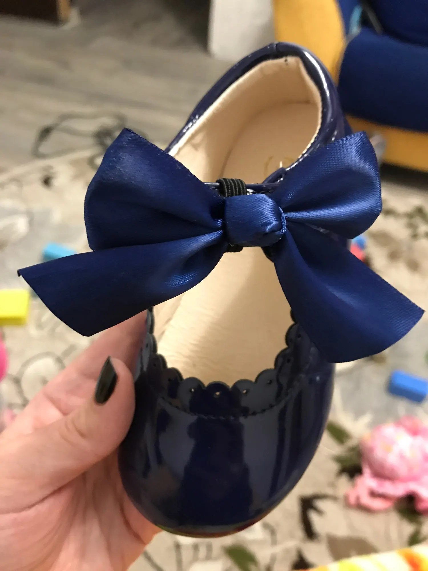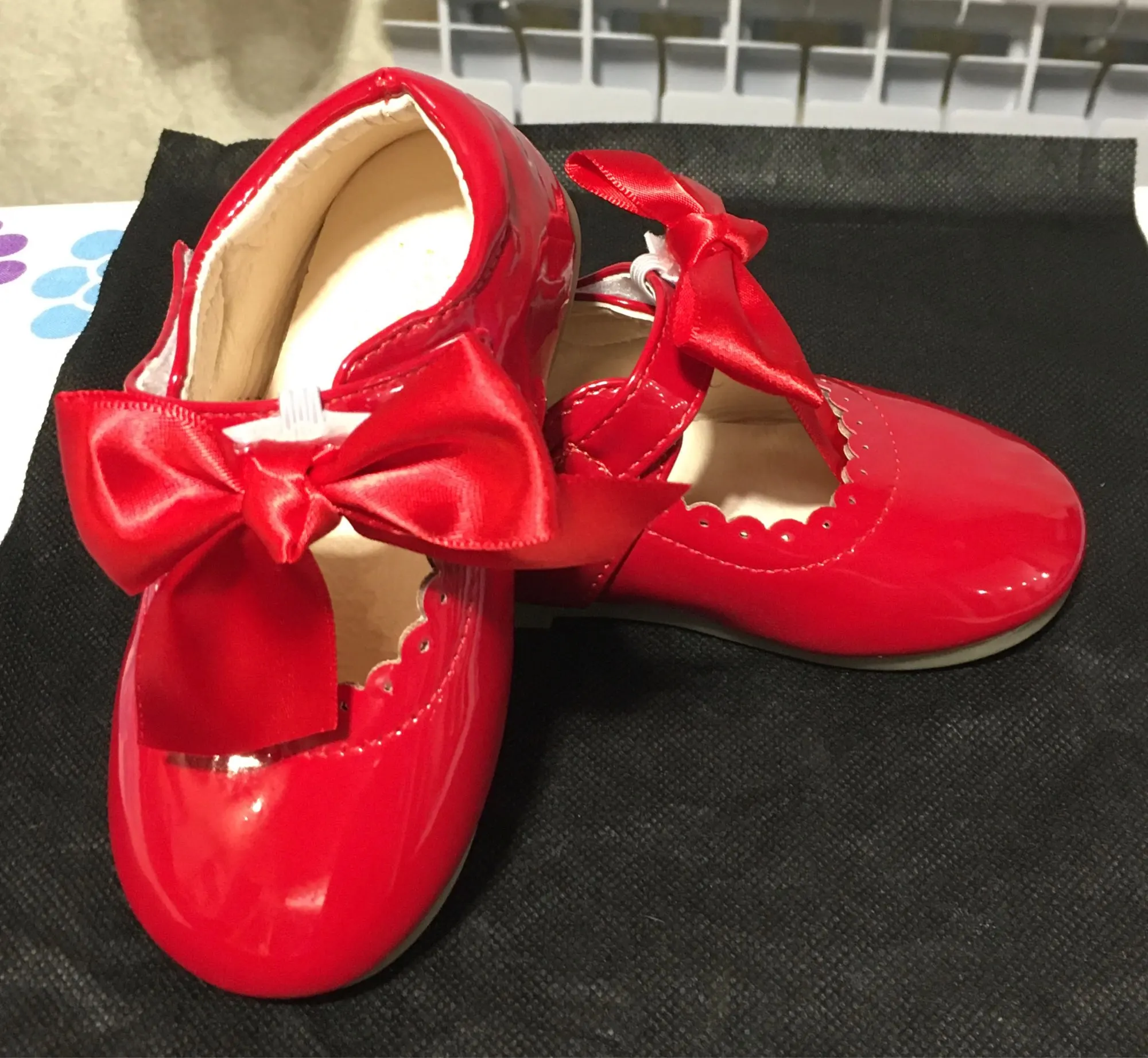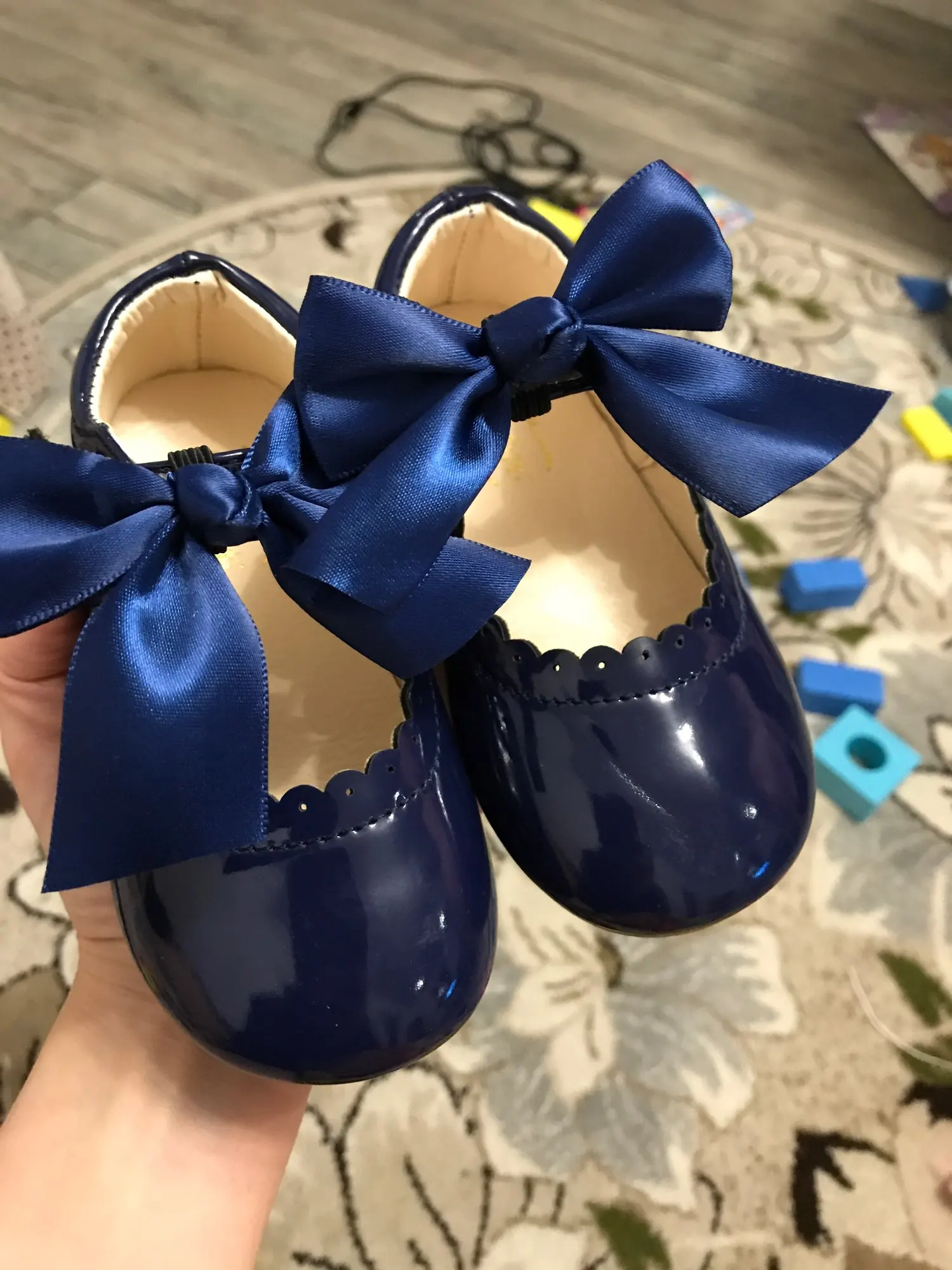 туфли роскошные! качество как дорогие брендовые туфли. единственный минус это виден клей на бантиках но их легко можно снять. они на резинке. одеваются на ремешок. на ребенка которому 1 годик с запасом 21 размер. доставка Мега скоростная. до России неделя.