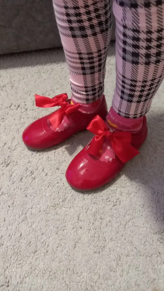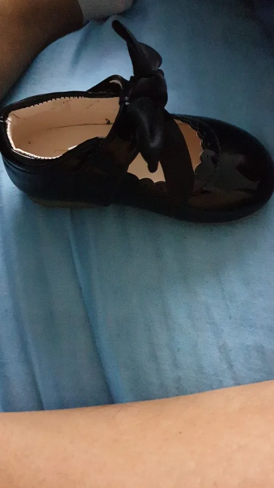 Сандалии красивые, идеальный цвет, застежка на липучке, размер не знаю, потому что этот подарок, но этот Rysa на правой подошве является niedopuszczalna, эта лакированная кожа должна быть кристально гладкой, под бантом тон Видимый клей, поэтому gwiadka меньше, быстрая доставка 13 дней-спасибо * _ *