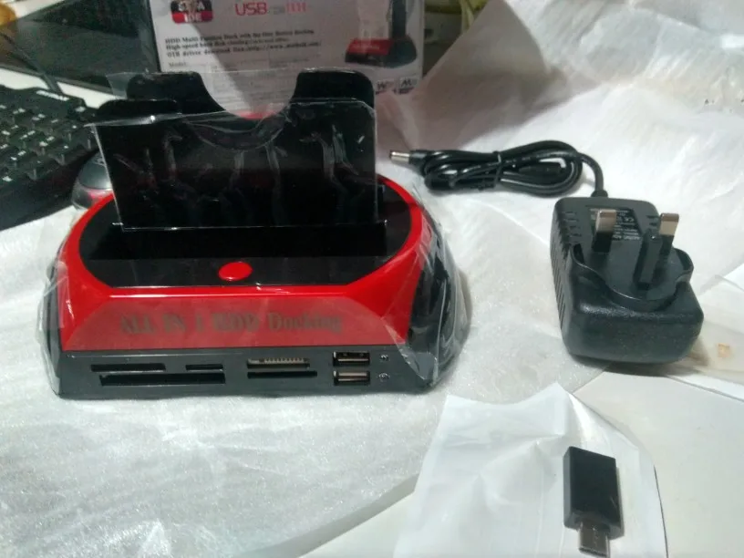 Упаковка прибыла в хорошем состоянии, хотя внешняя коробка немного помята, товар внутри не поврежден. Все товары получены в соответствии с описанием. Однако при тестировании устройства подключение дисков всегда отключается и включается. После многих испытаний, наконец, обнаружите, что кабель usb-разъема неисправен. После того, как вы откажетесь от оригинального usb-кабеля и подсоедините его к новому, все отлично работает. Поставщик должен был иметь xheck качество поставки кабеля, я мог бы ошибиться, что устройство само по себе неисправно, напрасно много времени.