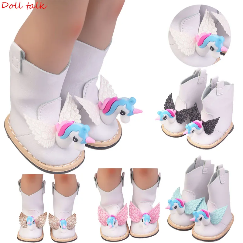 Модные кукольные ботинки с крыльями единорога 7 см для 18-дюймовой американской куклы Девочки подарок Радужная улыбка обувь для 43 см малышей новые куклы реброн игрушки