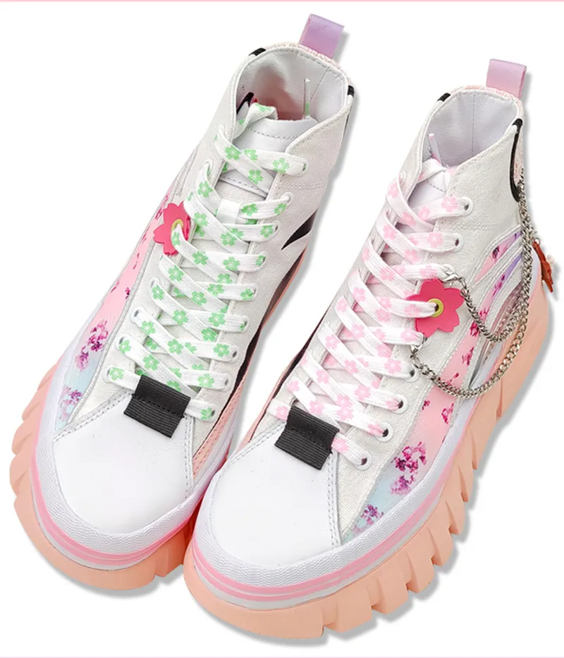 Красивые холщовые кроссовки с высоким верхом и индивидуальным рисунком, шнурки с розовыми цветами вишни и маргаритки, модные ковбойские шнурки для женщин и мужчин, Прямая поставка