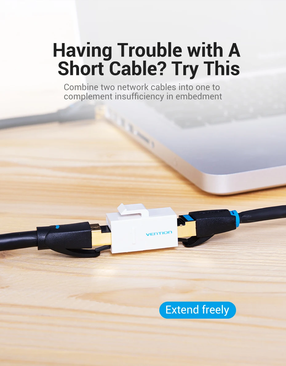 Коннектор Vention Cat5E, соединитель RJ45, Ethernet-кабель, Cat 5E, удлинитель Мама-мама для кабеля Ethernet