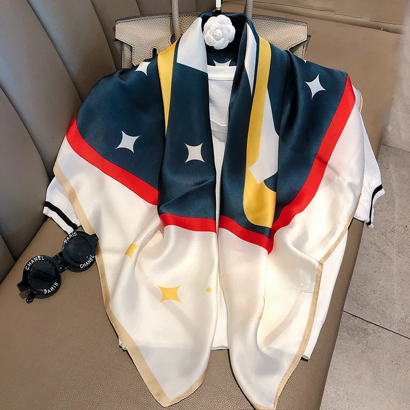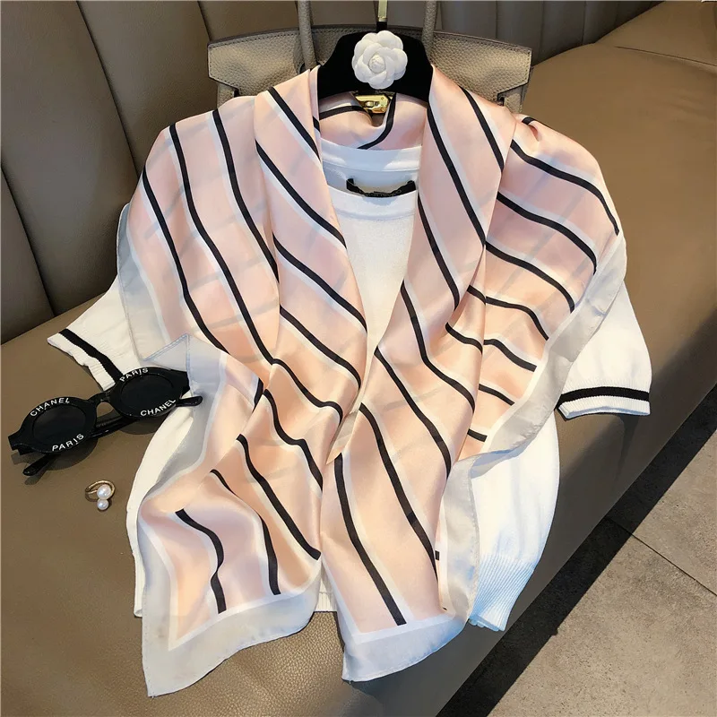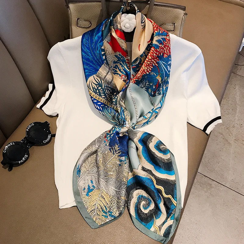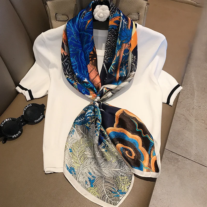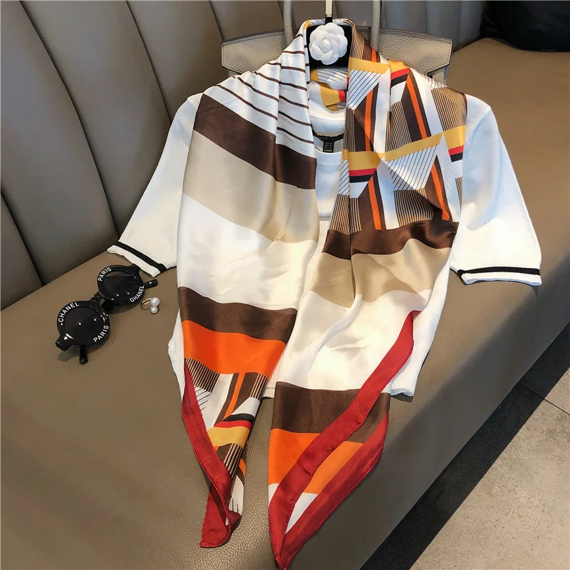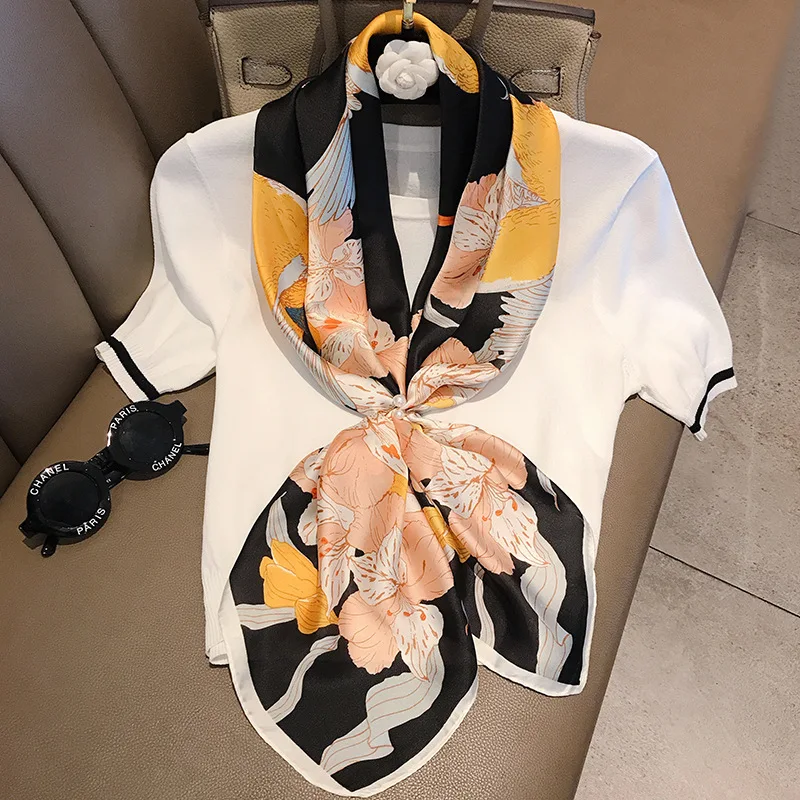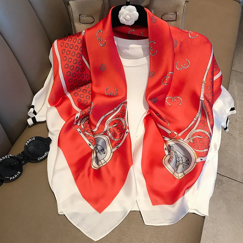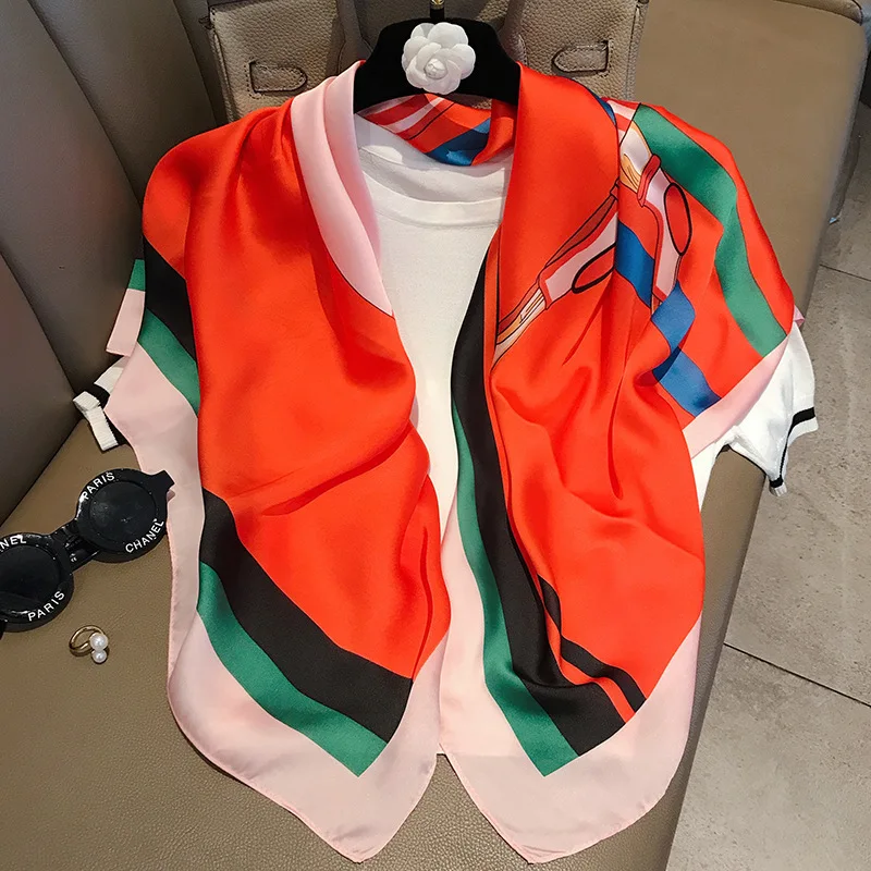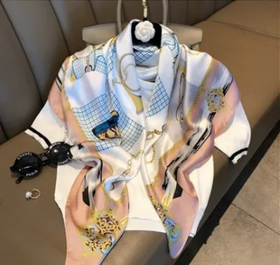 Платок женский шелковый с принтом, 90 х90 см, квадратный, для офиса