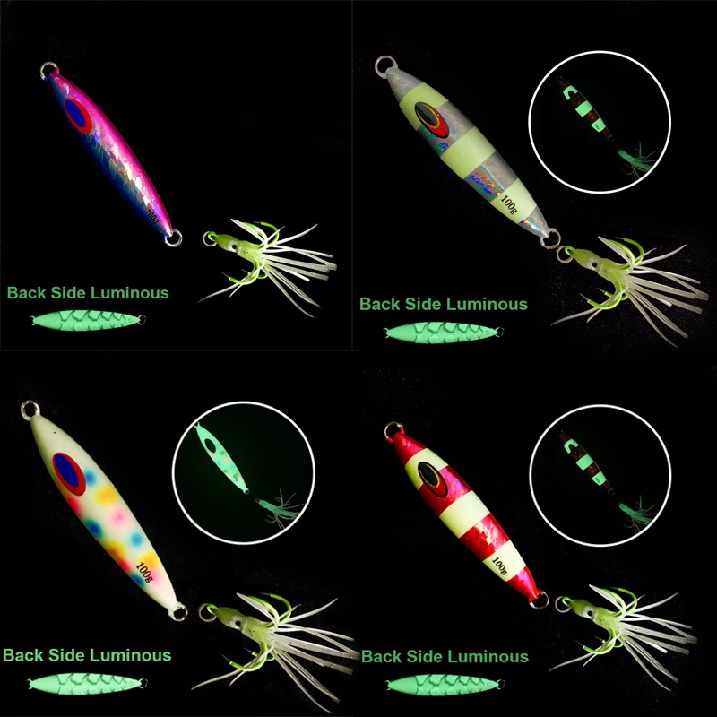 100 г 120 г 150 г плоская микро-металлическая джиг-приманка тонущая приманка для джиггинга с медленным падением крючок для кальмаров соленая светящаяся жесткая приманка