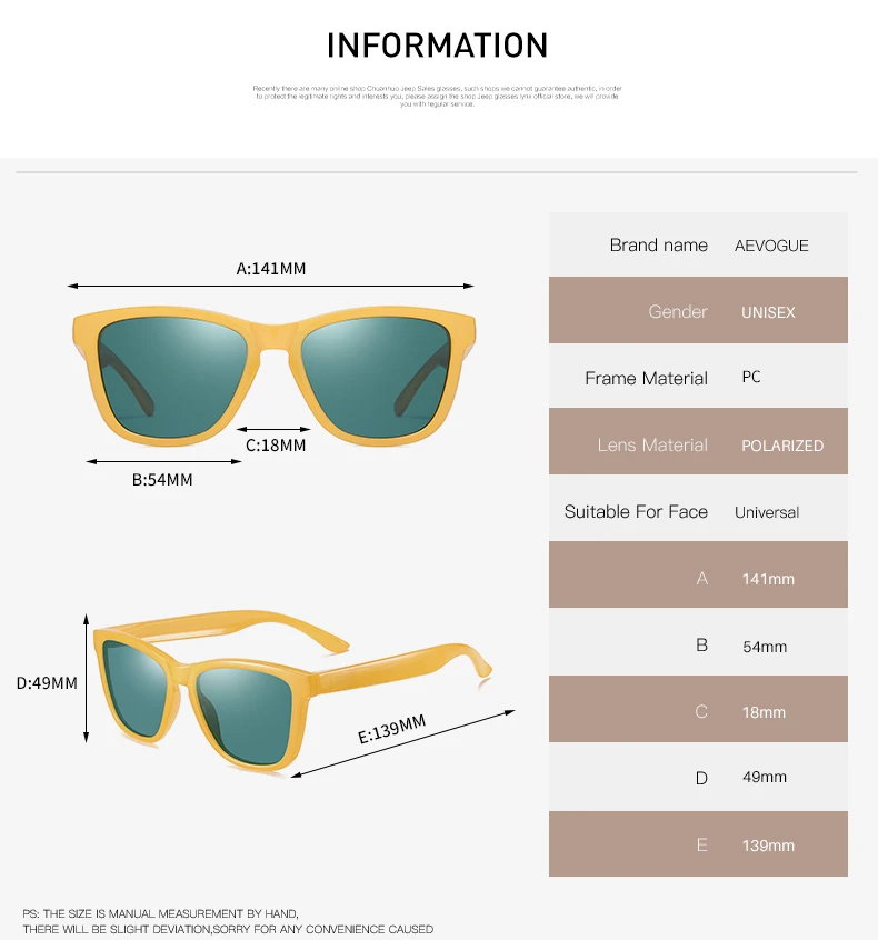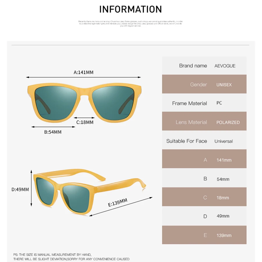 Солнцезащитные очки AEVOGUE AE0869 для мужчин и женщин, квадратные ...