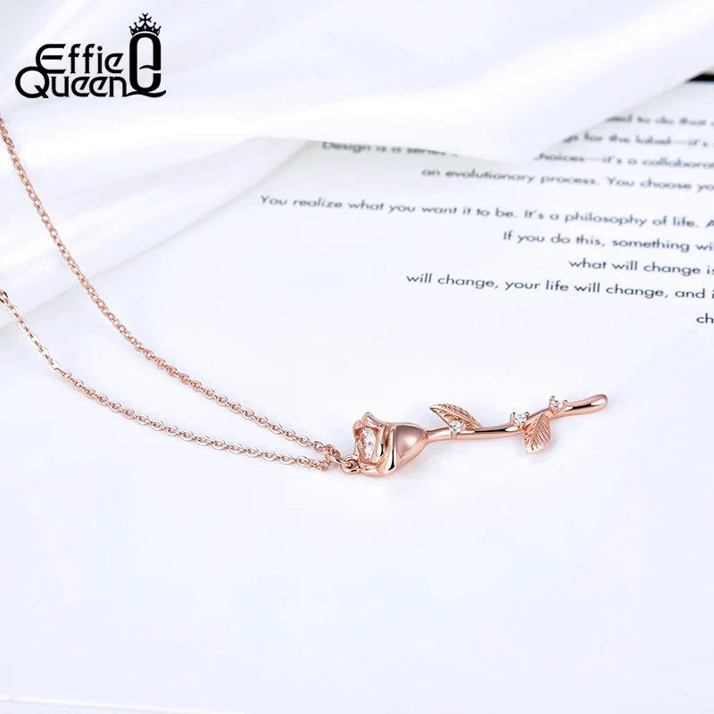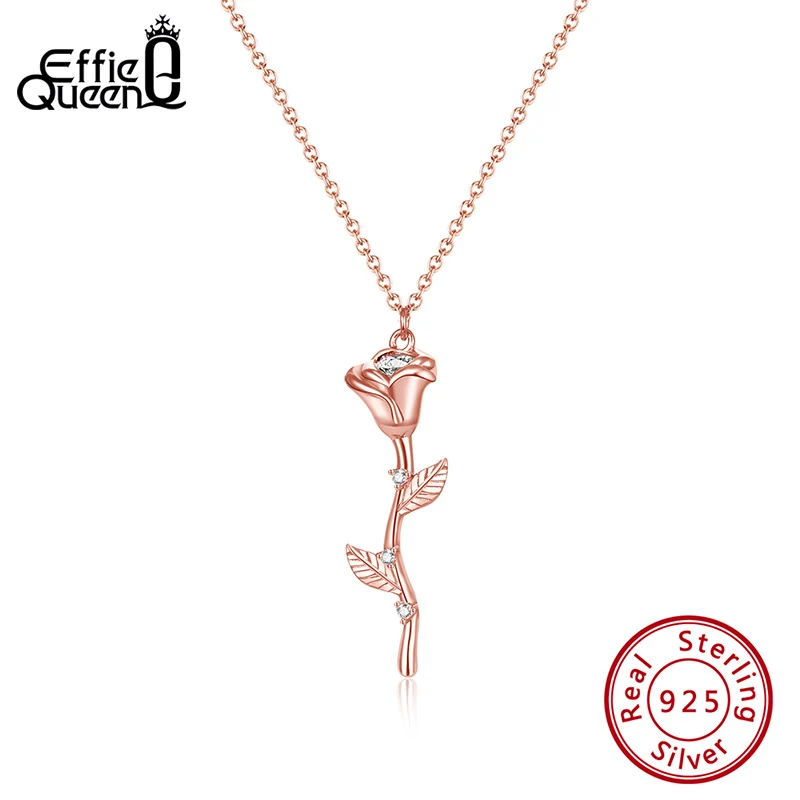 Effie Queen инкрустированные романтических встреч, ювелирное изделие, подарок 100% 925 Серебряный цветок розы Форма Подвеска длинное ожерелье ювелирные изделия свадебный подарок EQN06