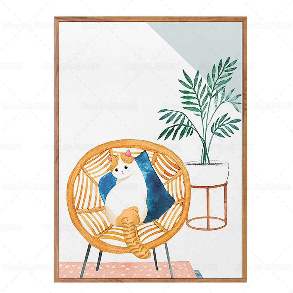 Cute Cat and Green Plants In House