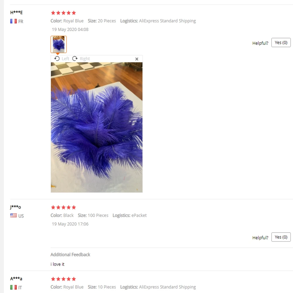 Очень довольна покупкой.Перья хорошего качества,красивого насыщенного цвета.Посылка пришла в указанные сроки. Отслеживалась.При доставке на почту пришло информирование смс.Рекомендую!