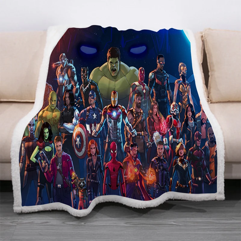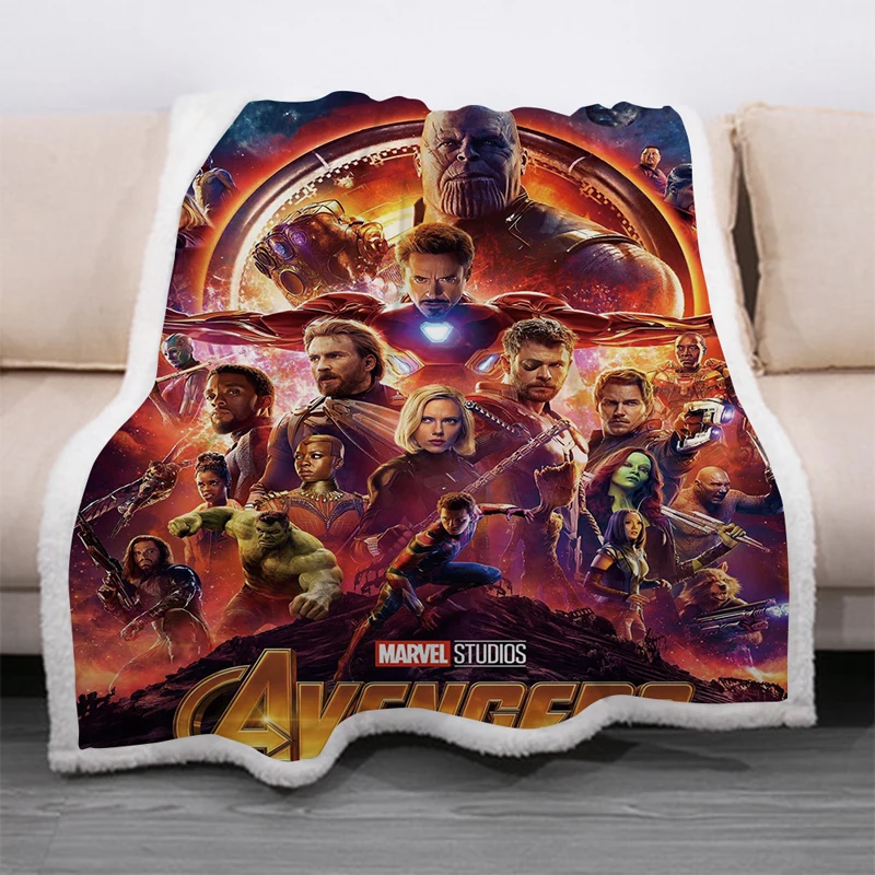 Одеяло с 3D принтом супергероев, Мстители, шерпа, покрывало на диван, кровать для путешествий, Железный человек, Халк, бархатное флисовое покрывало
