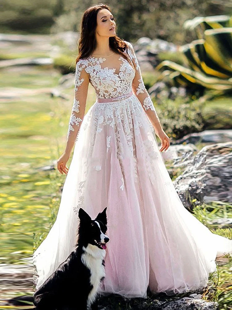 Booma розовый светильник, Пляжное свадебное платье Бохо С Длинным Р...