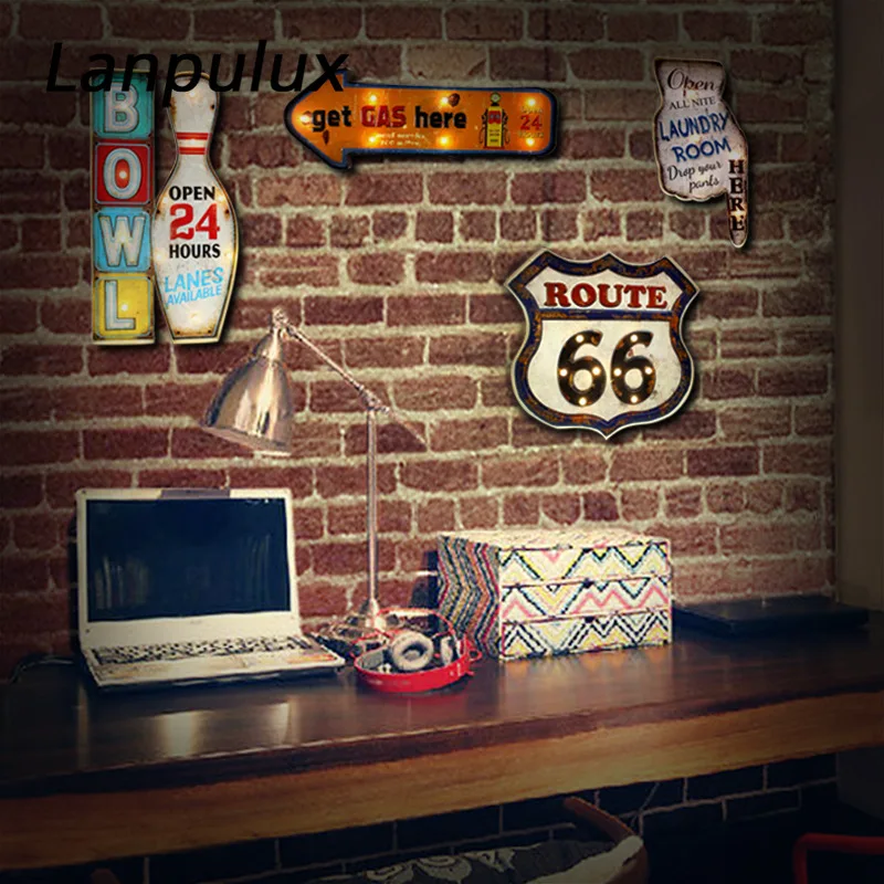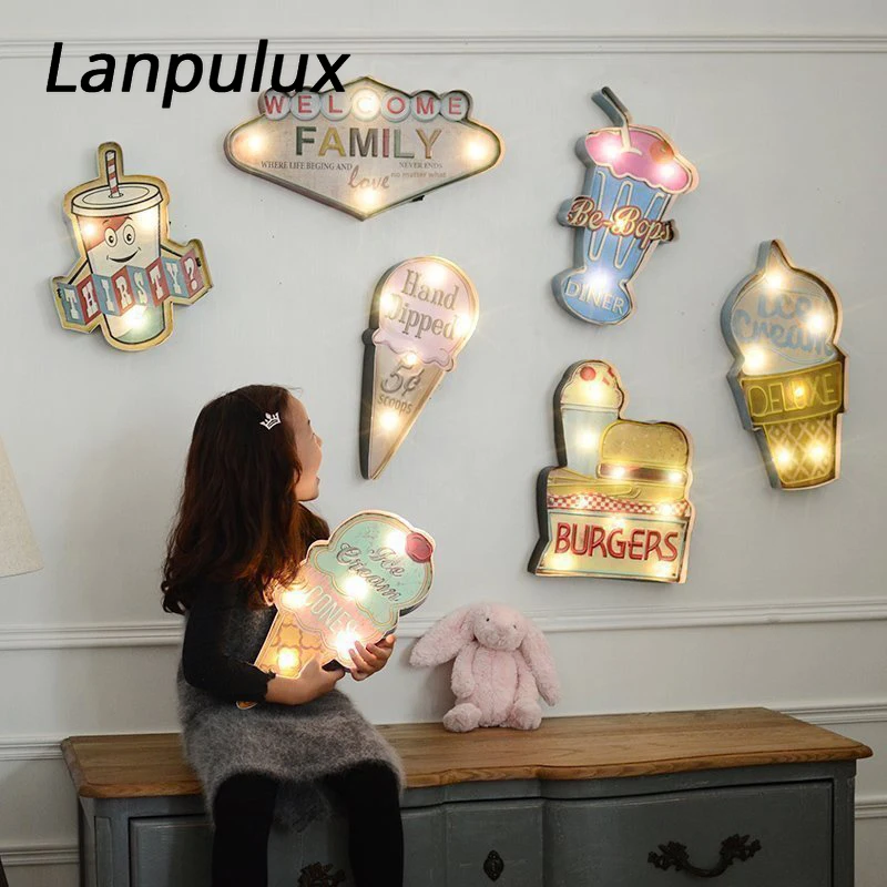 Новый светодиодный настенный светильник Железный арт Route66 Кола мороженое ночные светильники пульт дистанционного управления кофейный Бар Ресторан декор Освещение настенные светильники