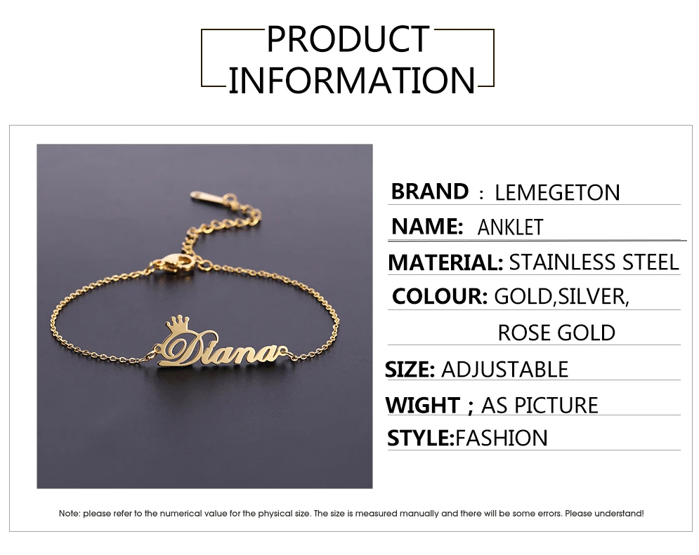 Женский браслет на ногу Lemegeton, персонализированный браслет из нержавеющей стали с именем, Ювелирное Украшение для ног