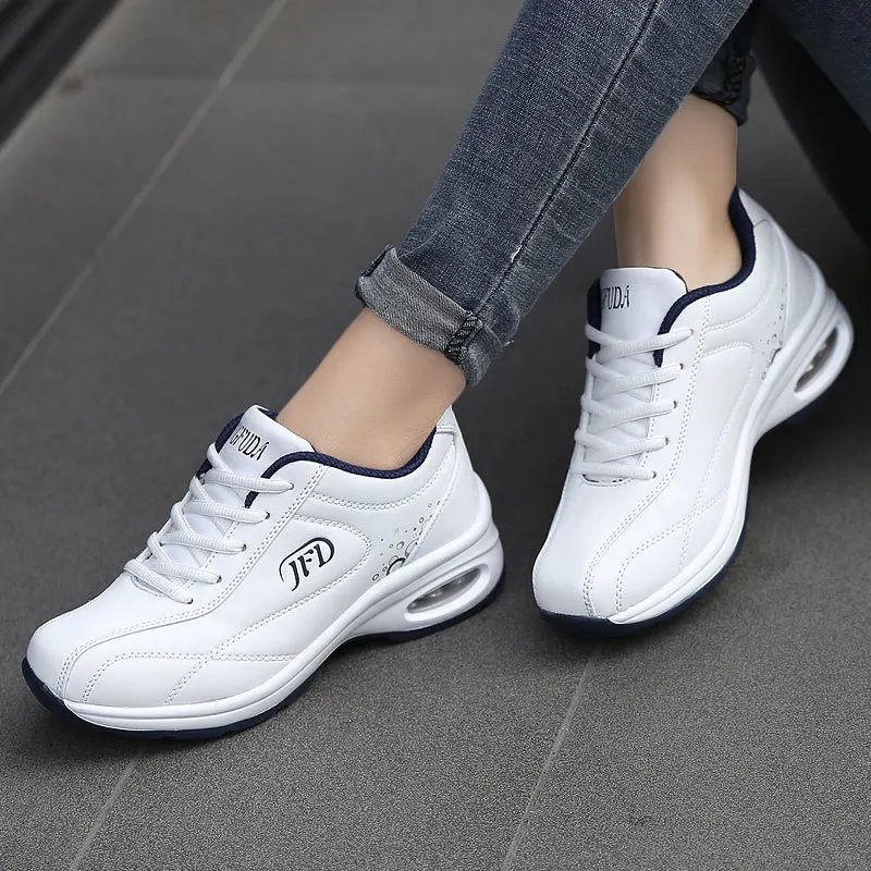 Обувь для бега из натуральной кожи; Женские кроссовки на воздушной подушке; Цвет белый; Повседневная амортизирующая Нескользящая женская спортивная обувь для прогулок