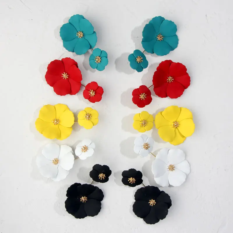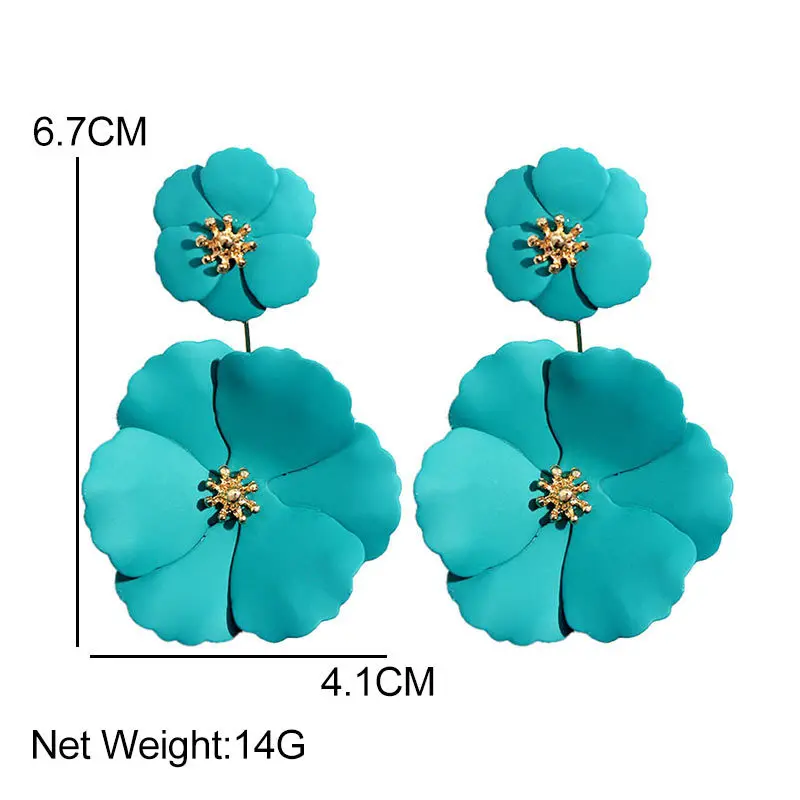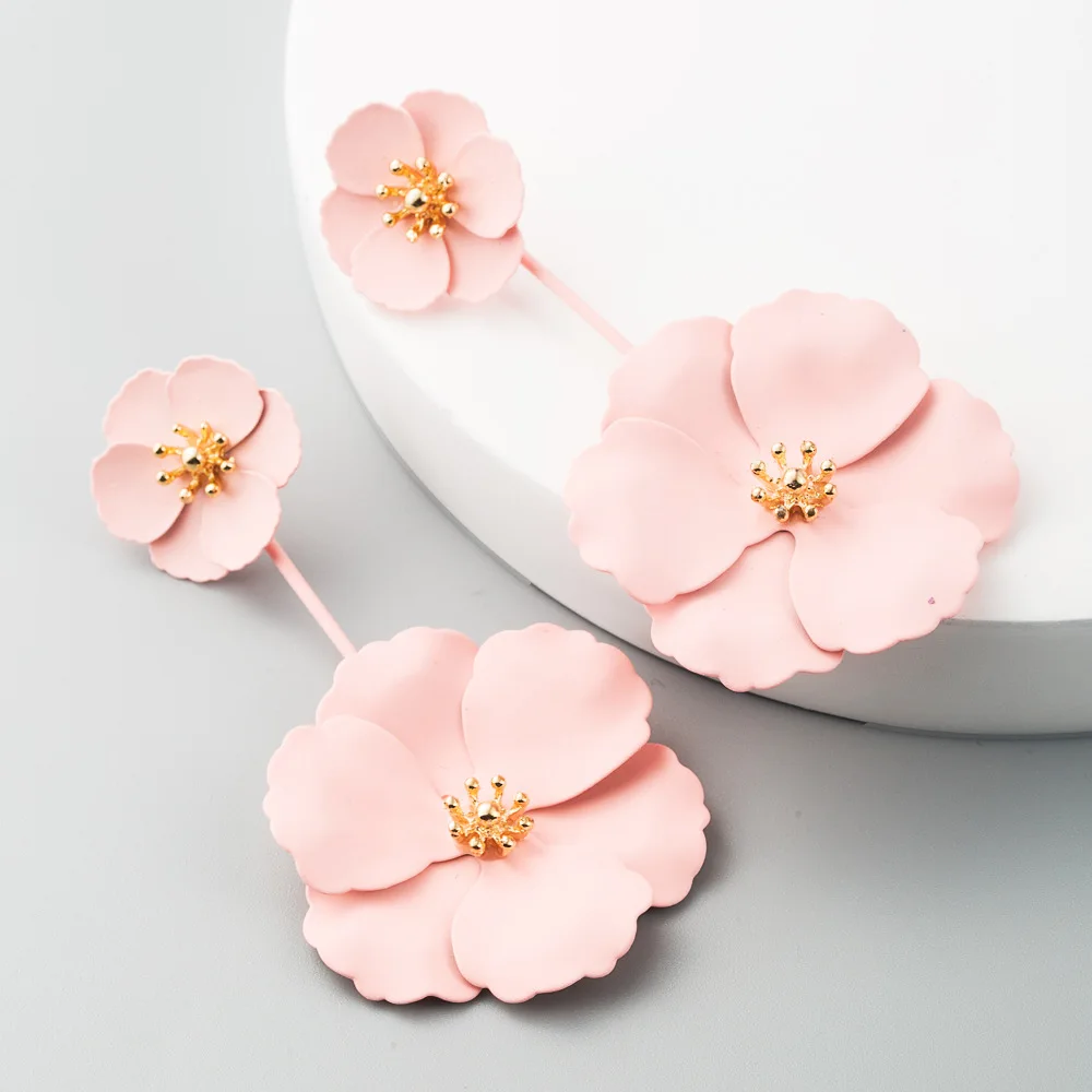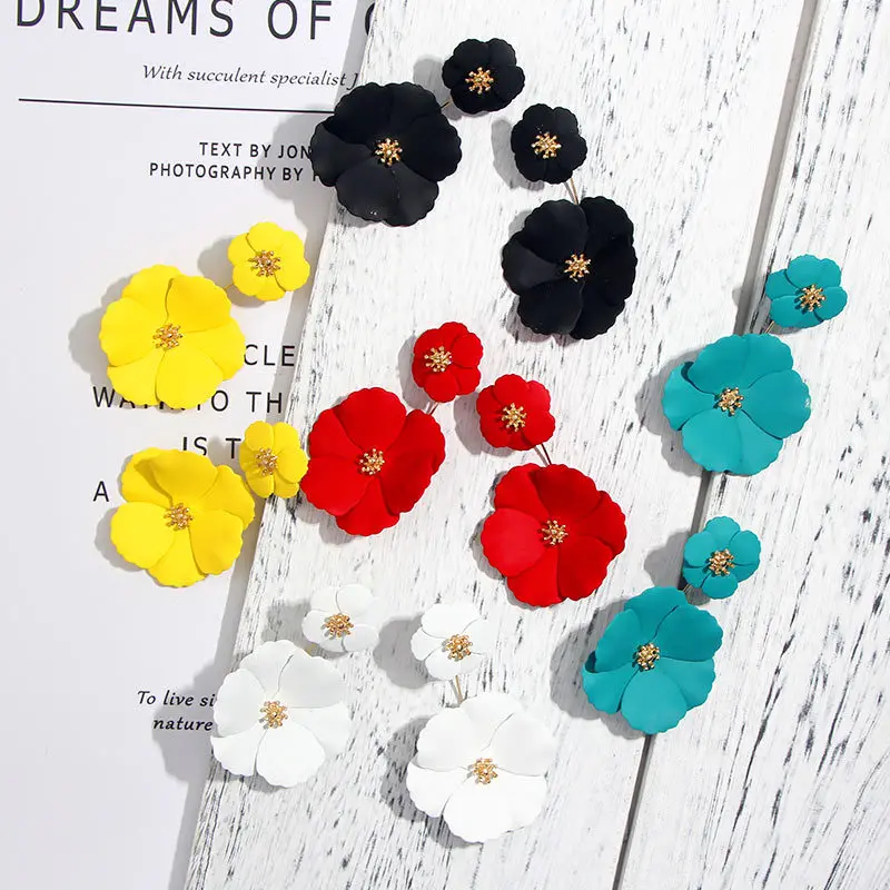 Серьги-подвески в Корейском стиле женские, милые двухслойные ювелирные украшения золотого и металлического цвета с цветочным принтом, вечерняя бижутерия для женщин, 2020