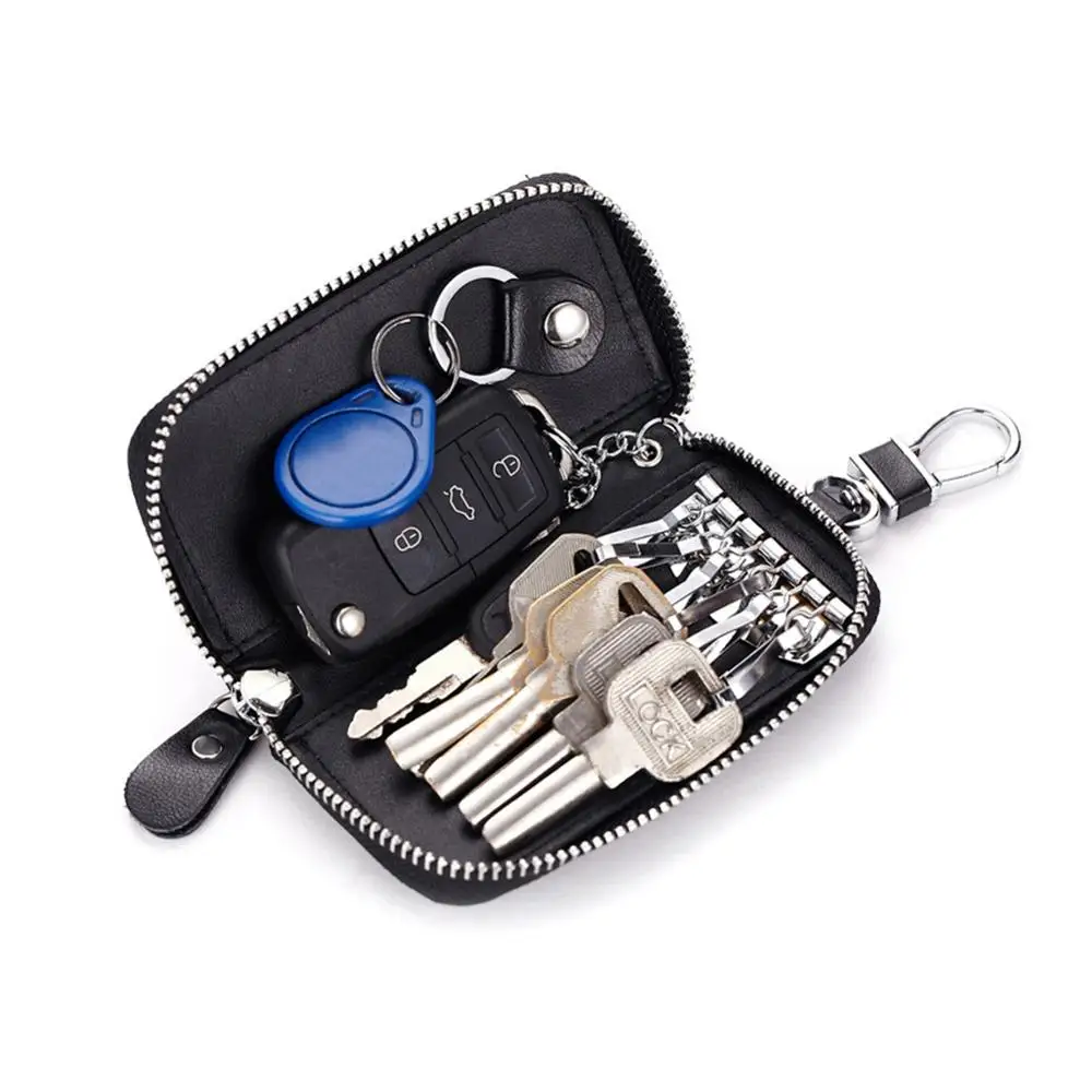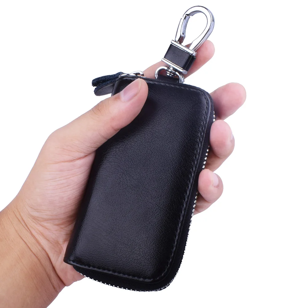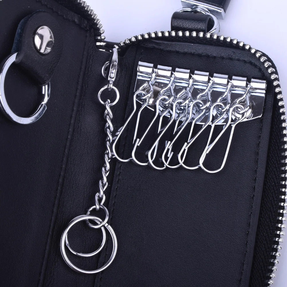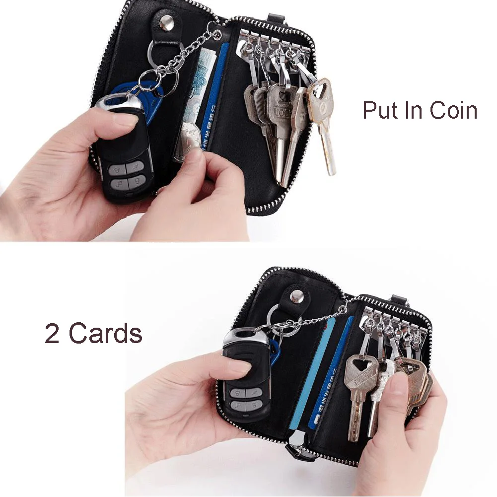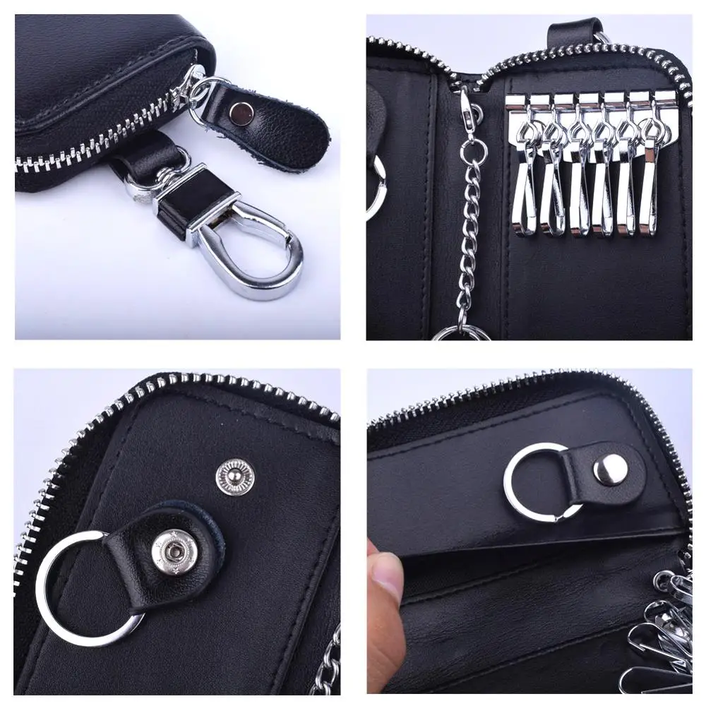 Держатель для ключей из натуральной кожи для мужчин и женщин, многофункциональный ключница, кошелек на молнии для кредитных карт, автомобильный брелок, кошелек