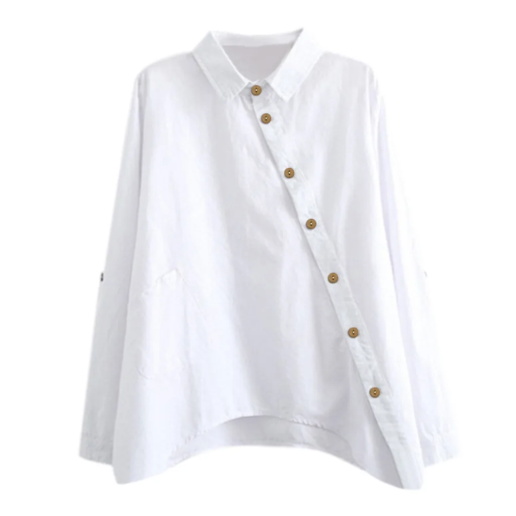 Женская офисная блузка, Повседневная Однотонная рубашка на пуговицах, с длинным рукавом и отложным воротником, 2020
