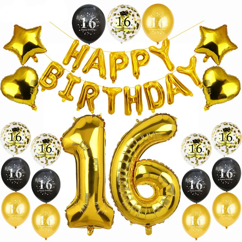 Воздушные шары из латекса, украшение для вечеринки в честь 16-го дня рождения, 16 цифр, 16 шаров