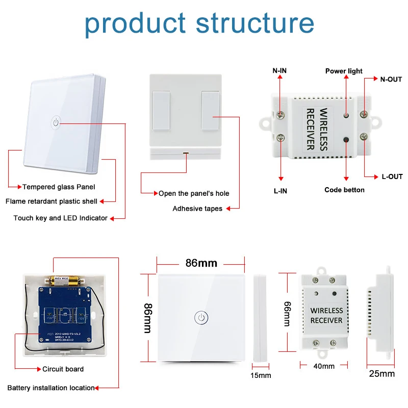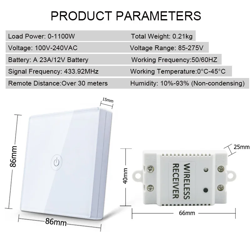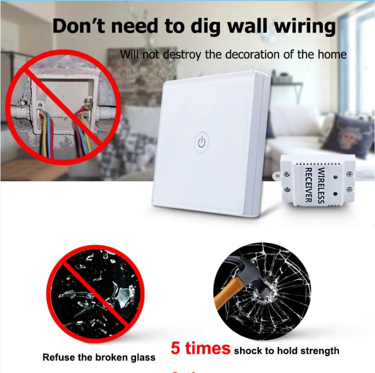 Беспроводной пульт дистанционного управления использует технологию RFID (Радиочастотная Идентификация), используя беспроводной пульт дистанционного управления всех видов освещения Новый Интеллектуальный переключатель, одна или несколько ламп на крытом управлении продуктом в соответствии с Международной электротехнической практике и использованием отечественных за пределами самого передового дизайна электронной цепи, стабильной и надежной производительности. Панель переключателя в соответствии с национальным стандартом: GB16915.1-1997 и GB2099.1-1996. Дома, офисы, торговые центры, отели, больницы, склады и другие места управления освещением и аналогичного контроля электрических приборов.