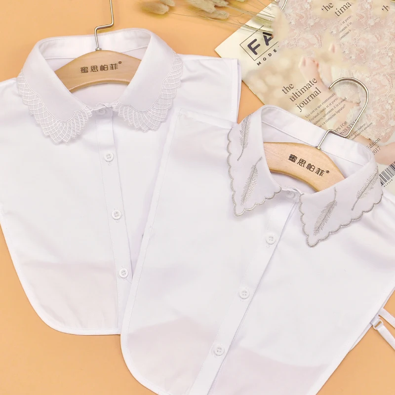 Вышивка, ложный воротник, женские съемные воротники, рубашка с отворотом, белый ложный воротник, женская рубашка, подходит для девочек