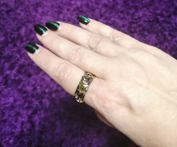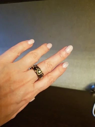 Безумно шикарное кольцо! Выглядит точно как на фото. Прочное, приятно увесистое, абсолютно без дефектов - я просто в восторге! На пальце сидит очень надёжно, не давит, хоть и снимается только с помощью мыла) яростно рекомендую всем! Большое спасибо! Не так часто алиэкспресс радует настолько качественным товаром)