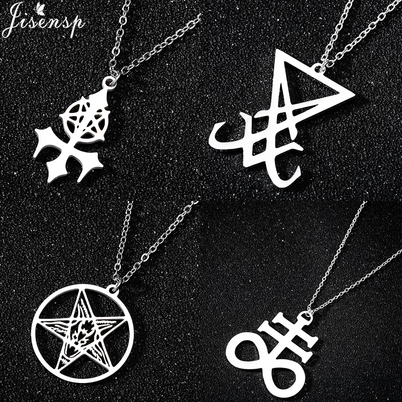 Ожерелье Jisensp с большим талисманом Baphomet, подвески s, геометрическая пантаграмма, ожерелье из нержавеющей стали для мужчин, булавка из козы, ювелирные изделия в подарок
