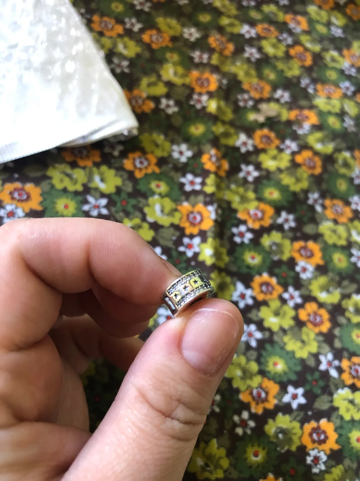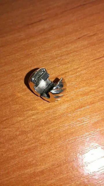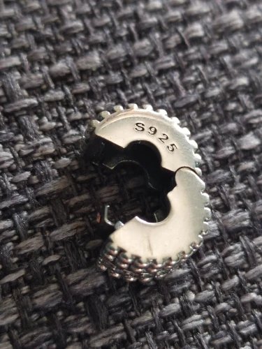 Клипса очень хорошая, аккуратненькая, штампик есть, однако разъем маленький и на выпуклостях браслета, где, как я понимаю носят разделители, не застегивается, так что использовать можно просто как шарм.