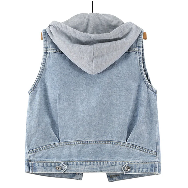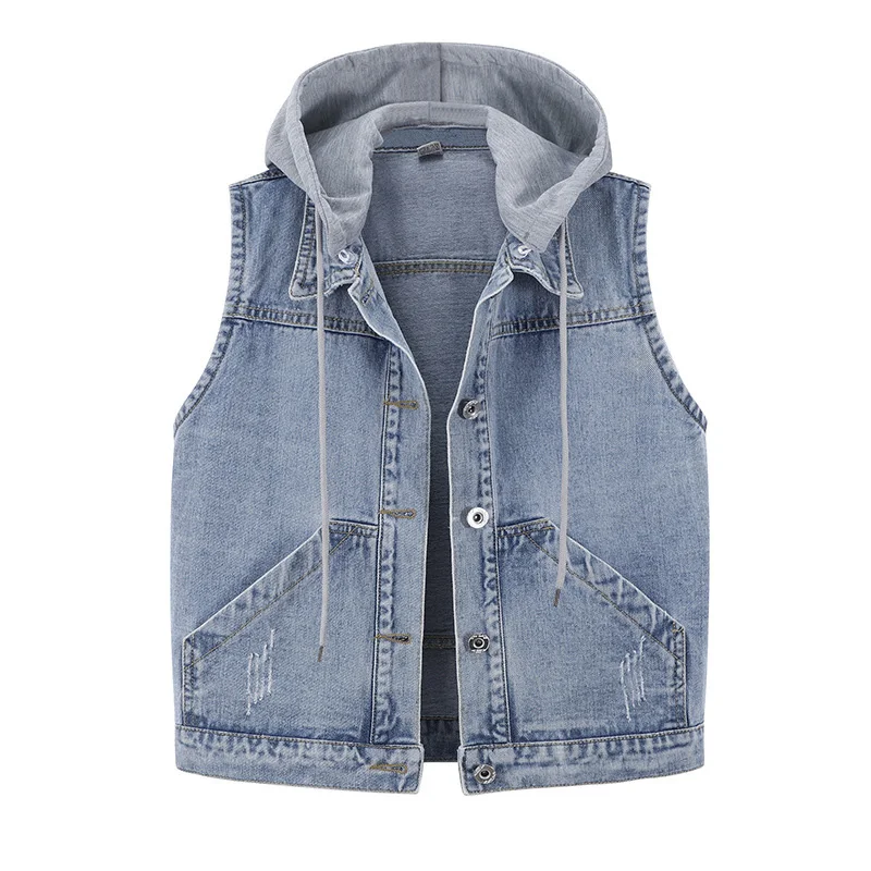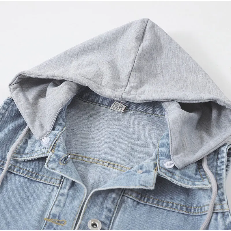 Женская короткая джинсовая куртка с капюшоном, теплая флисовая курт...