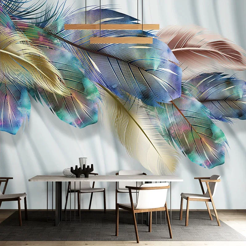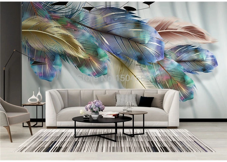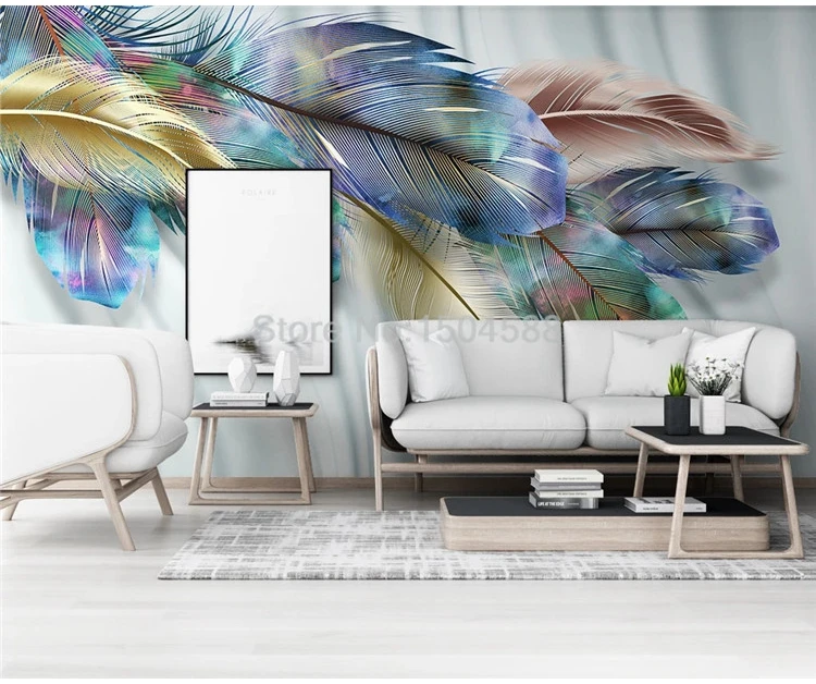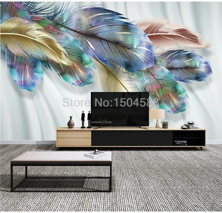 Обои в скандинавском стиле, современные, простые, цветные, с перьями, роскошный фон, 3D обои с золотыми перьями для гостиной