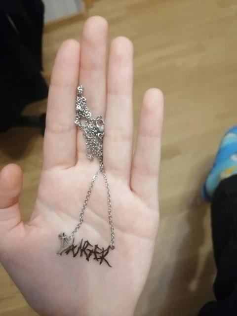 прекрасная подвеска, цепочка идеального размера, правда немного хлипкая, но если аккуратно, то ок. возможно со временем потемнеет. а так всё круто, подписывайтесь на инст kaccappp.