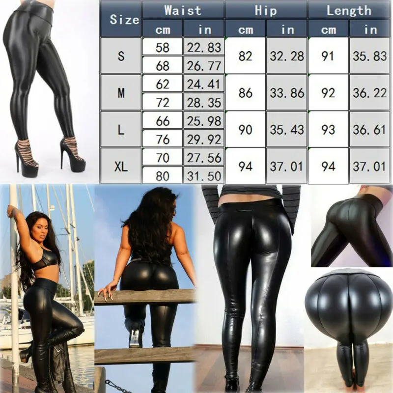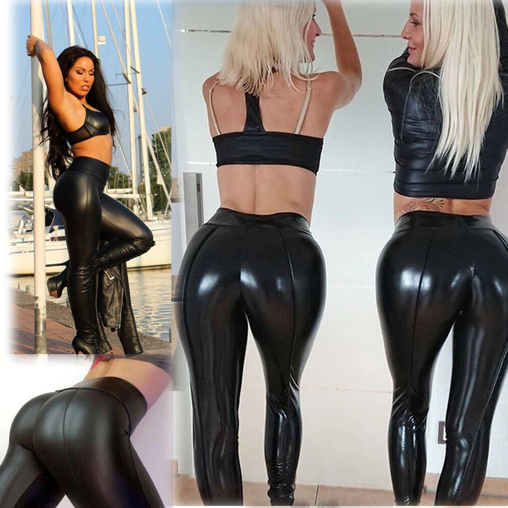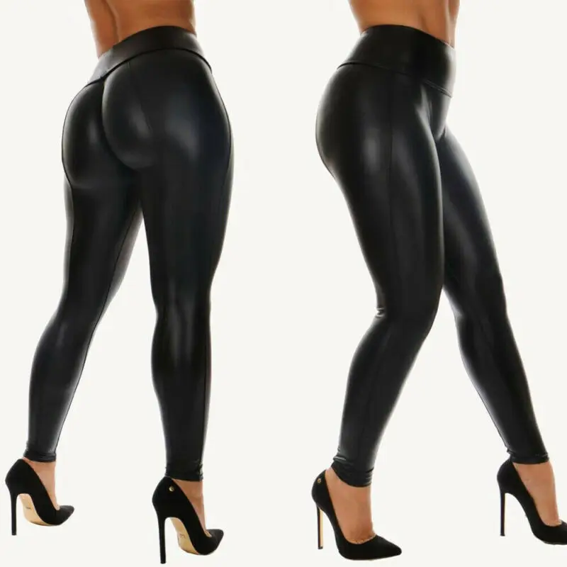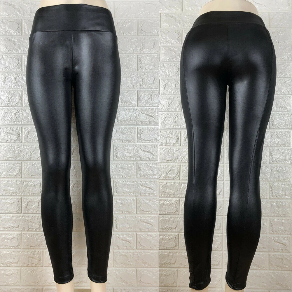 Женские черные леггинсы из искусственной кожи, с высокой талией
