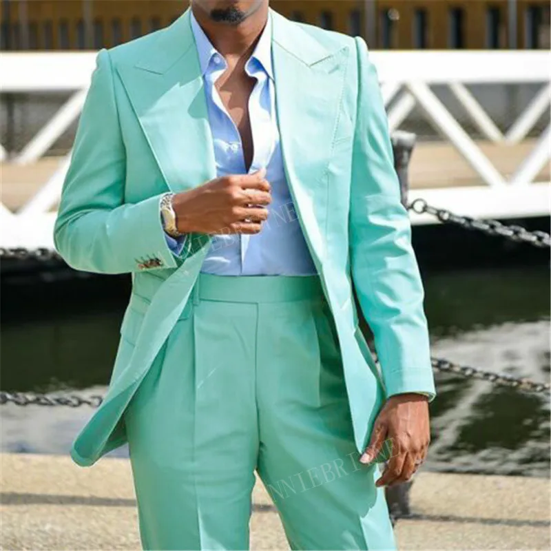 Мужской костюм с большими лацканами, костюм из 2 предметов, блейзер мятного цвета, облегающее летнее официальное платье, костюм для жениха, Изысканный свадебный и офисный комплект, 2020