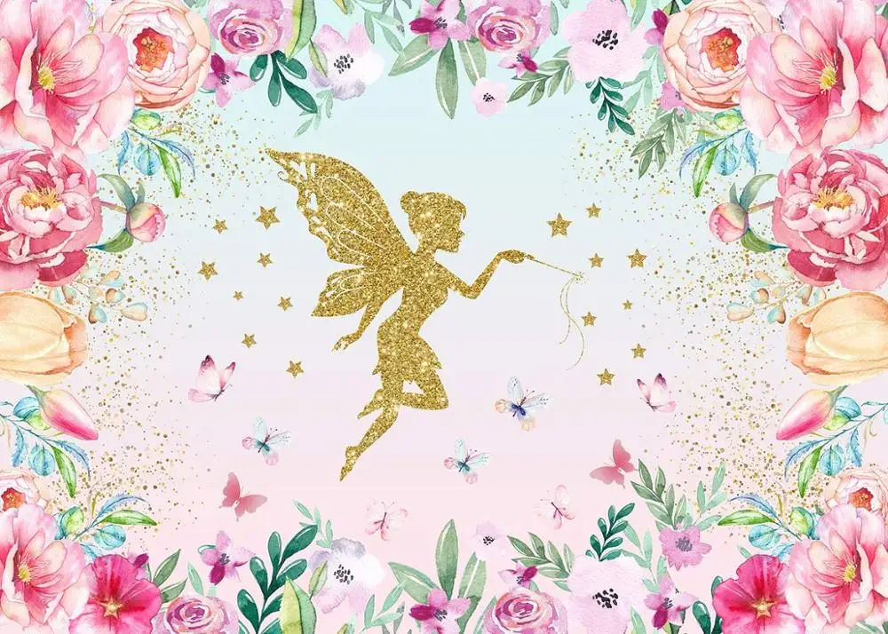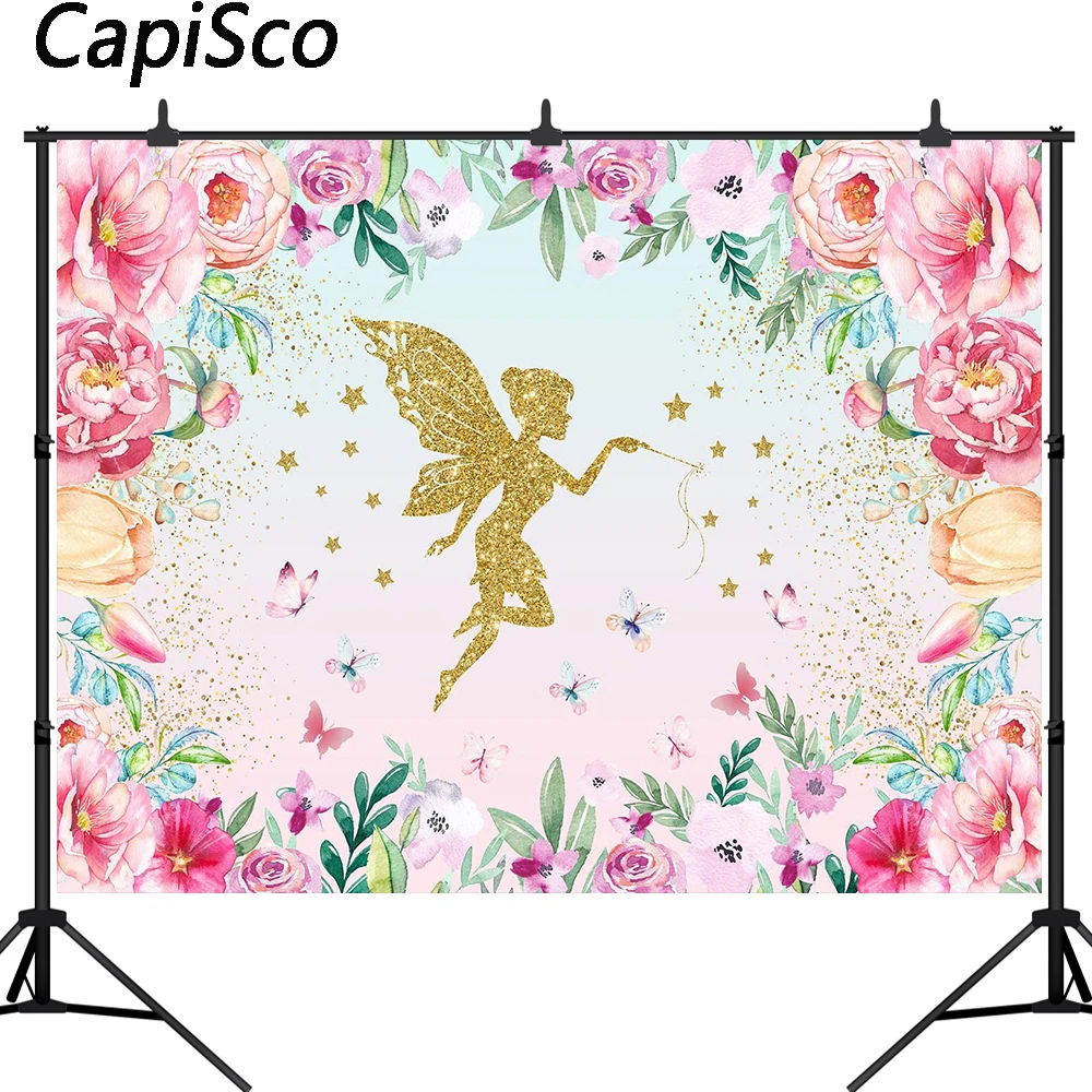 Фон для фотосъемки с изображением розовых золотых цветов Феи принцессы бабочки девочек день рождения акварельные фоны для фотостудии
