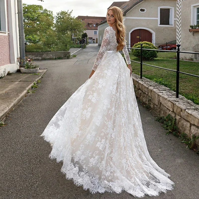 Винтажные кружевные свадебные платья с длинным рукавом, свадебное п...