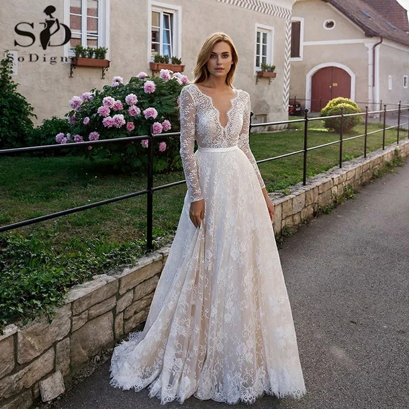 LORIE элегантные кружевные свадебные платья с длинным рукавом 2020 ...