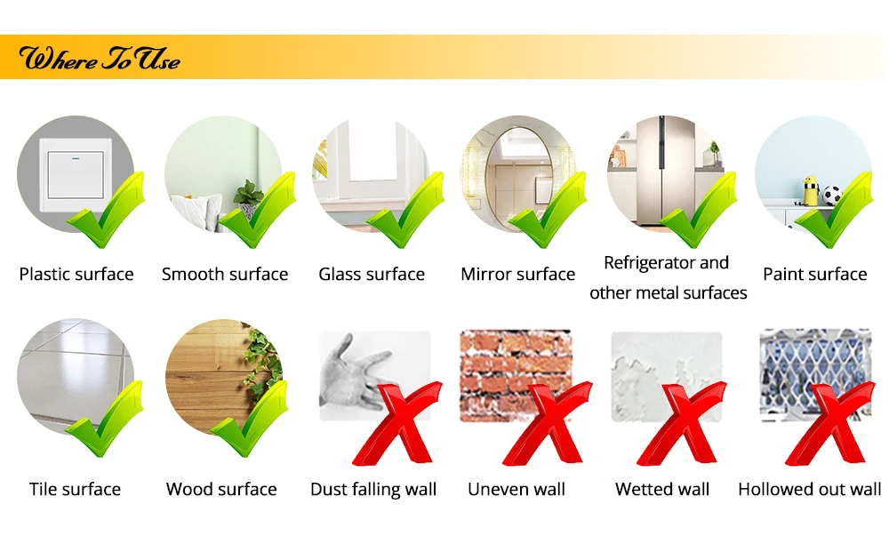 1. Убедитесь, что поверхность, которую нужно прикрепить, является гладкой поверхностью и что есть конвекции, сотканы и морщины. Не прилипайте.