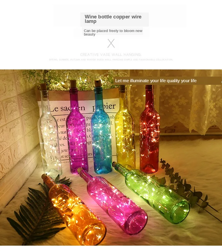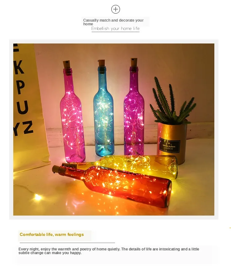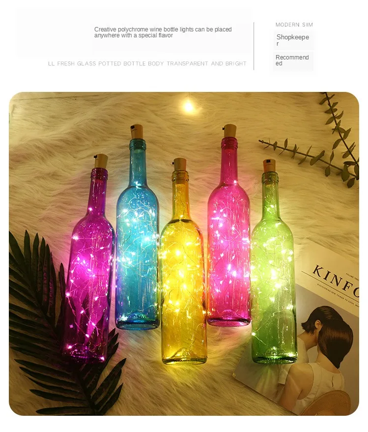 6 шт. пробка для винной бутылки, медная проволока, лампа 1 м2 м, светодиодная гирлянда, волшебная лампа, фонарь для бара, украшение для рождественской вечеринки, гирлянда