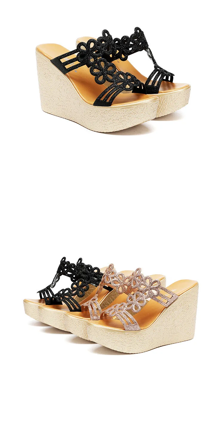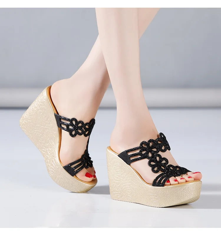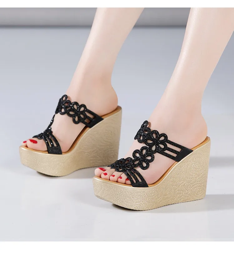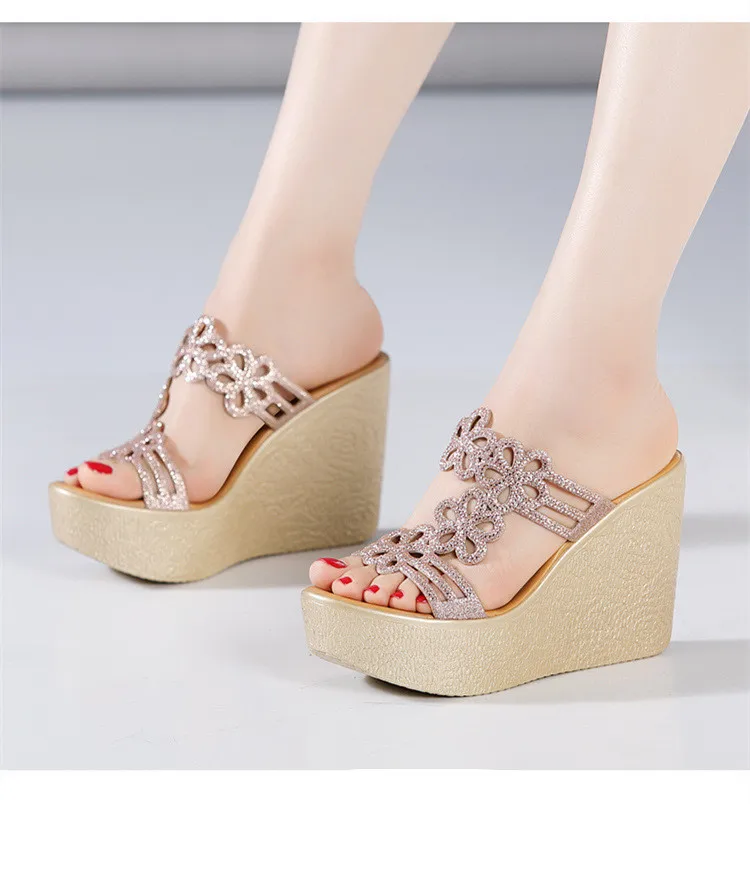 Женские шлепанцы с открытым носком, Летние свадебные туфли на высоком каблуке, танкетка, сланцы, модель 32-41, 2022